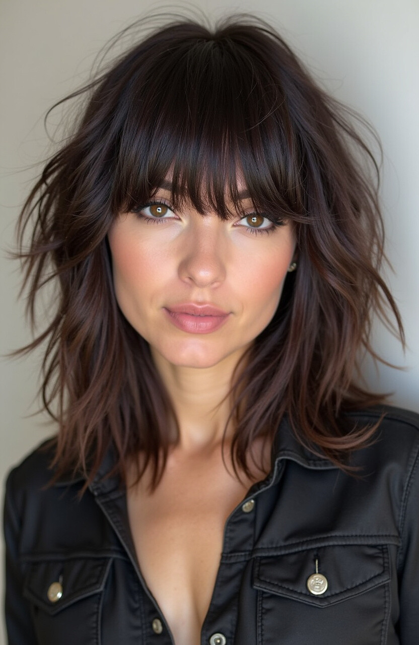 Shaggy curtain bangs are the epitome of cool, laid-back style. With their tousled look and uneven edges, they offer a relaxed, rock-and-roll vibe. This style is perfect for those who want to channel their inner rockstar.