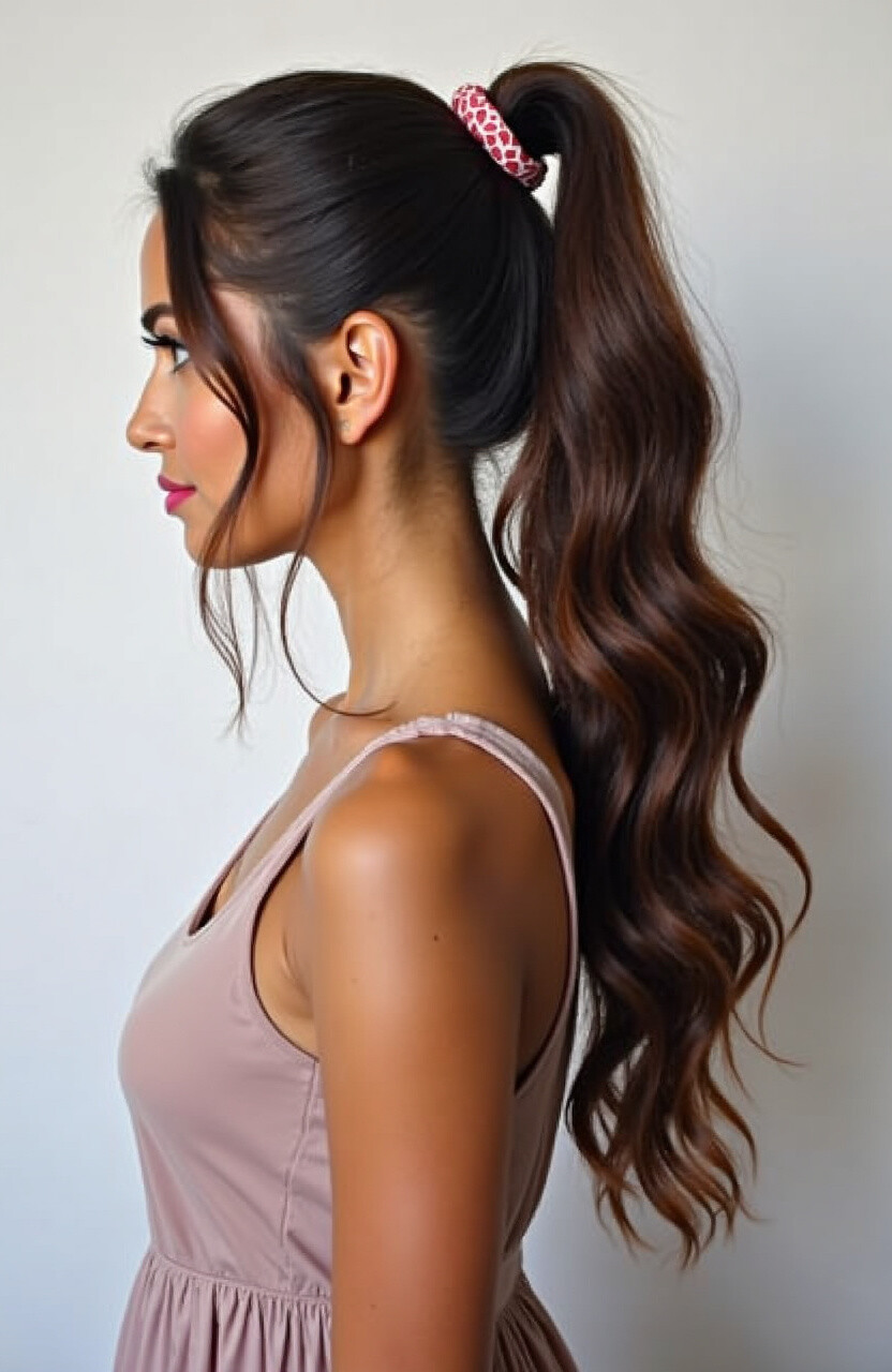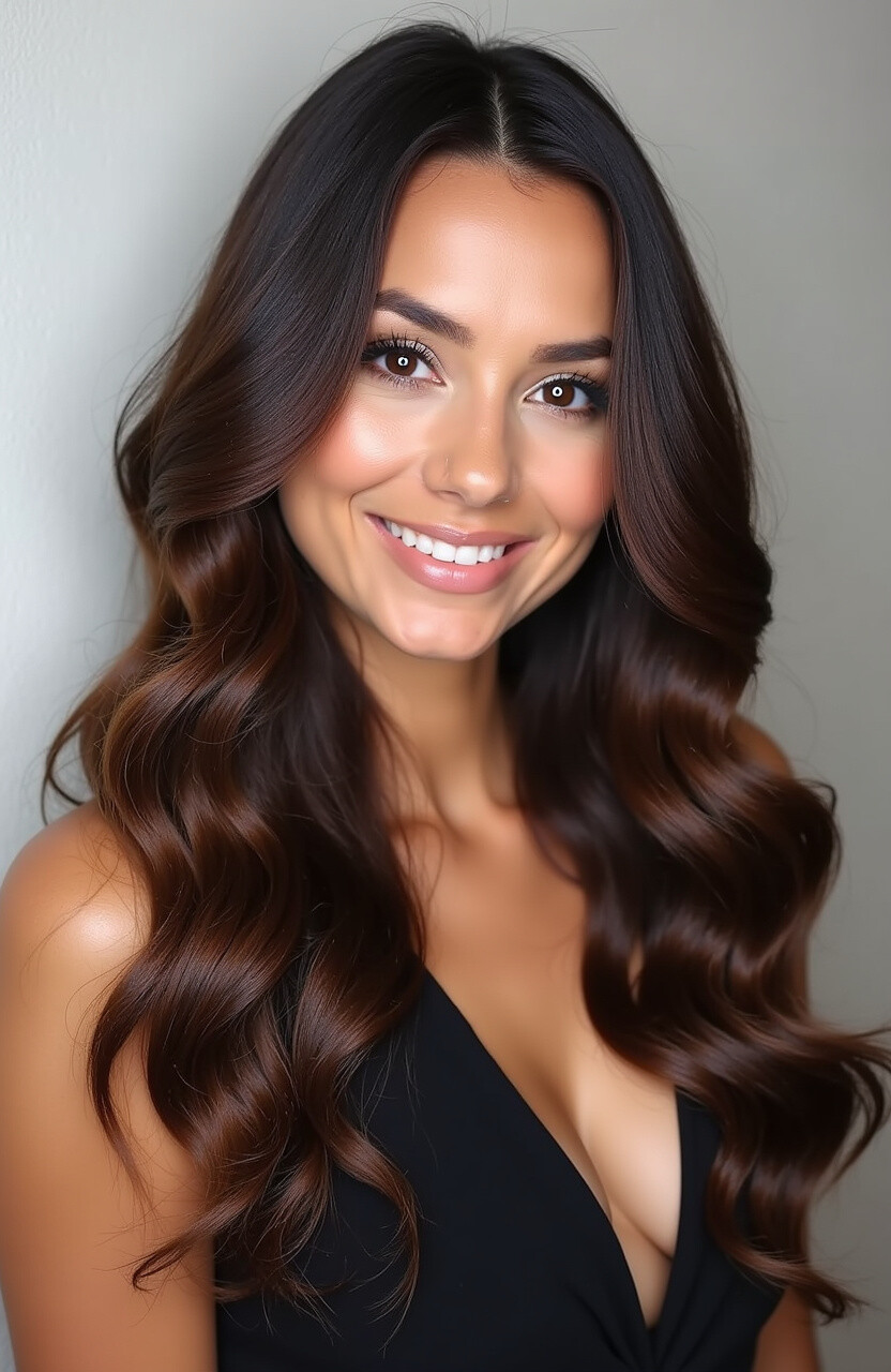 Use a flat iron to smooth out the waves and apply a shine serum for a glossy finish. It’s a style that’s both elegant and easy to maintain.