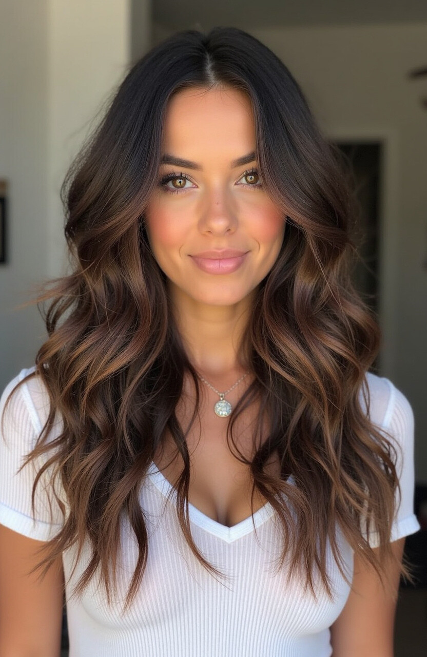 The layers enhance the waves, giving your hair a natural bounce. Use a volumizing spray to keep the layers light and airy.