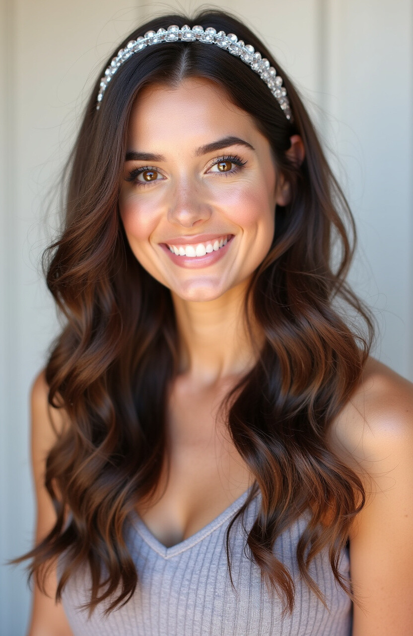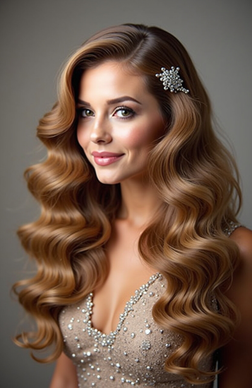 These waves add volume and body, making your hair look fuller. For an added touch of glamor, pair them with a sparkly hairpin.
