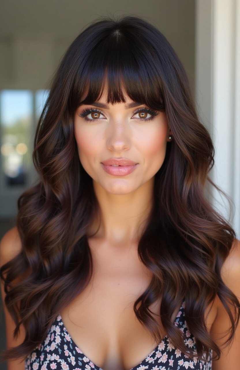 Add some flair to your waves with bangs. It’s a bold statement that’s sure to turn heads.