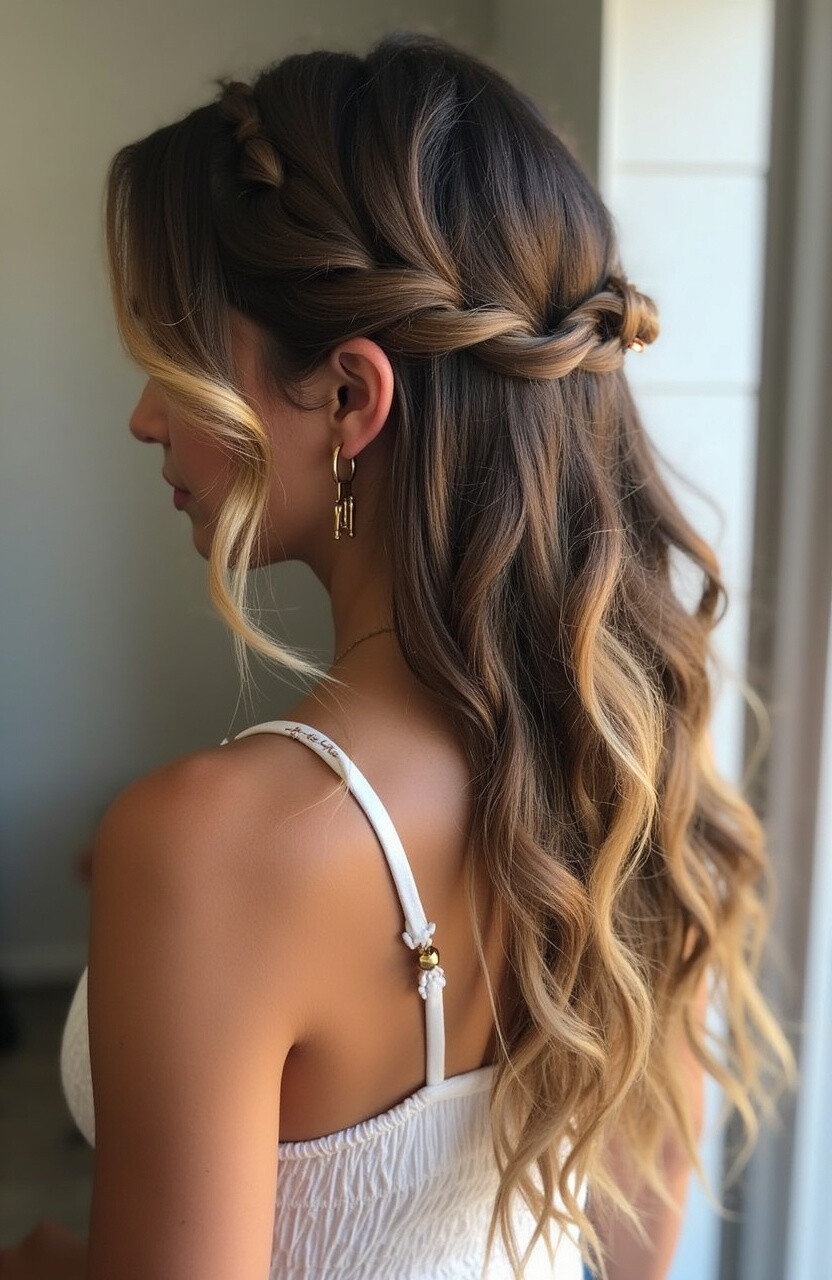 Create small twists in sections of your hair and let the rest flow in waves. It’s a whimsical look that’s perfect for any fun occasion.
