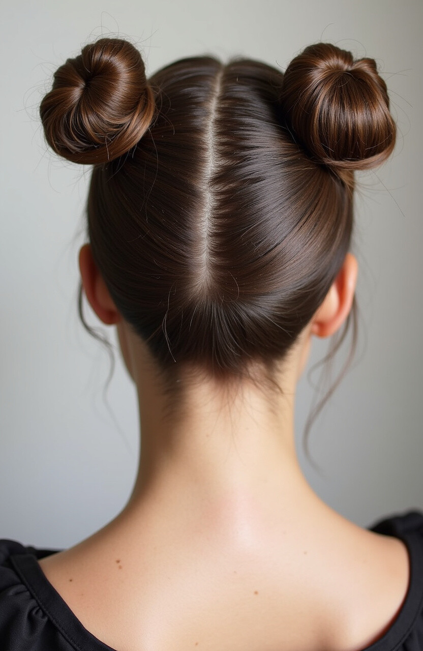 Sleek double buns bring a polished and sophisticated touch to the double bun trend. They are perfect for formal events or professional settings.