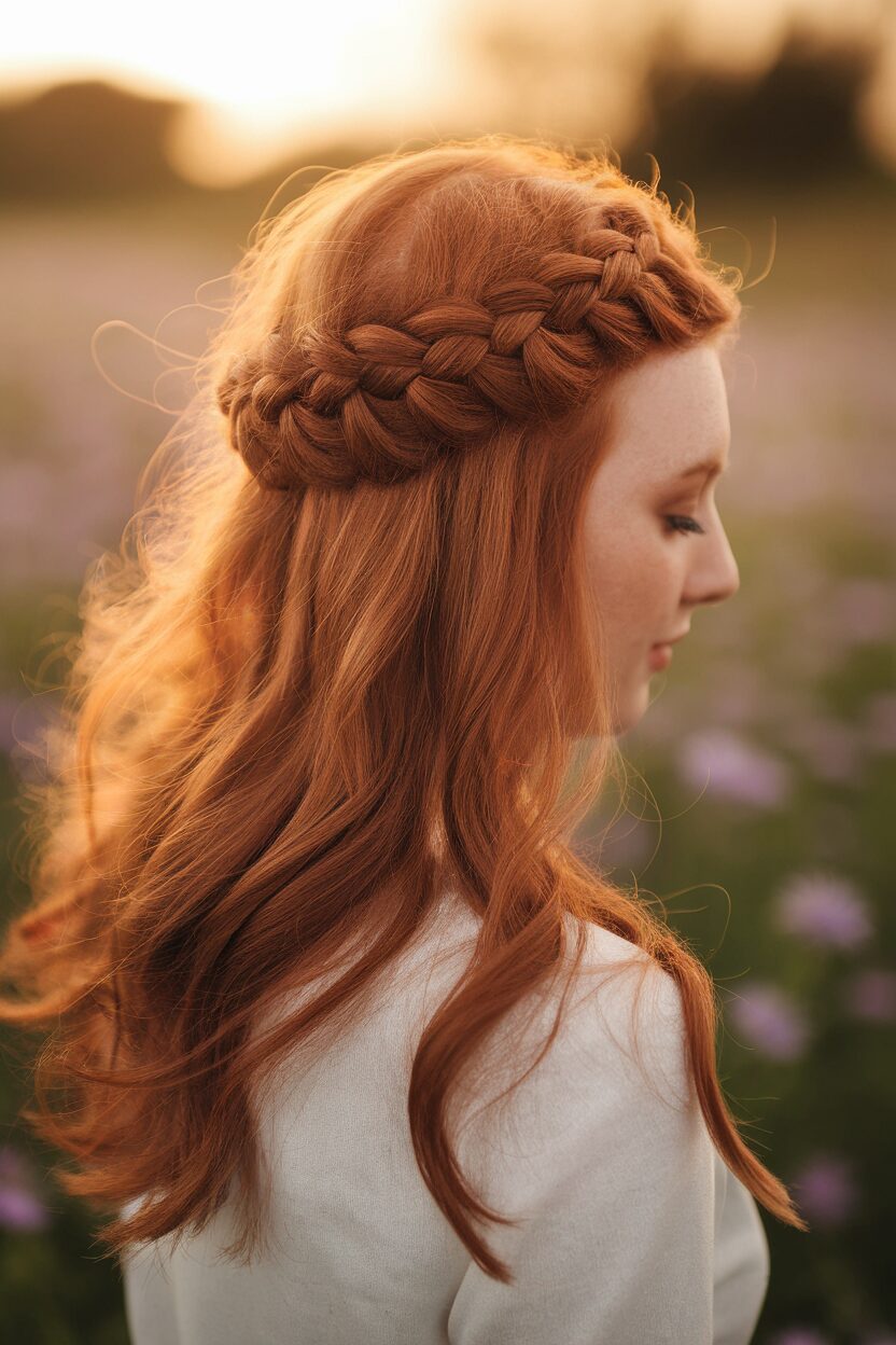 Feel like royalty with the Dutch braid crown, a style that circles your head like a crown. It’s perfect for weddings or special events where you want to stand out. The braid starts near one ear and goes over the top of your head, ending at the other ear.