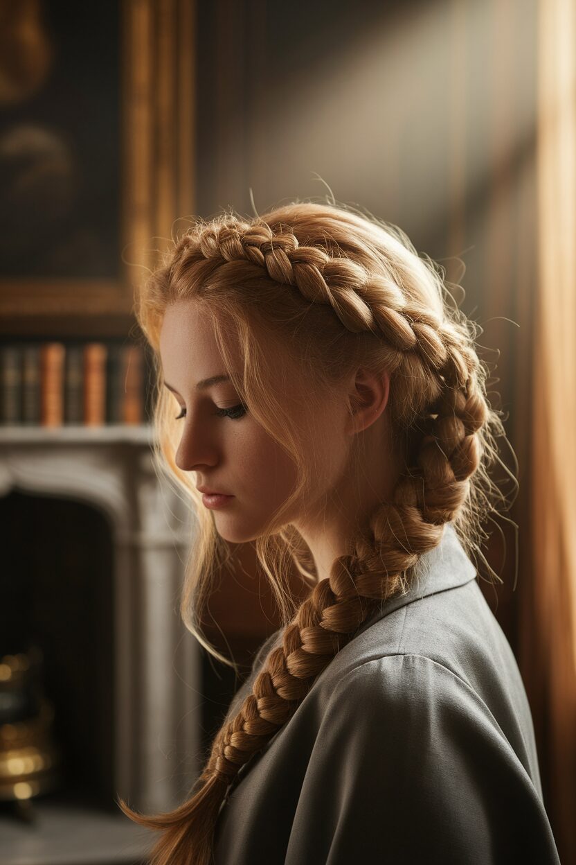 For a dramatic and eye-catching look, the side-swept Dutch braid is your go-to. It starts at one side of your head and elegantly cascades down the other.