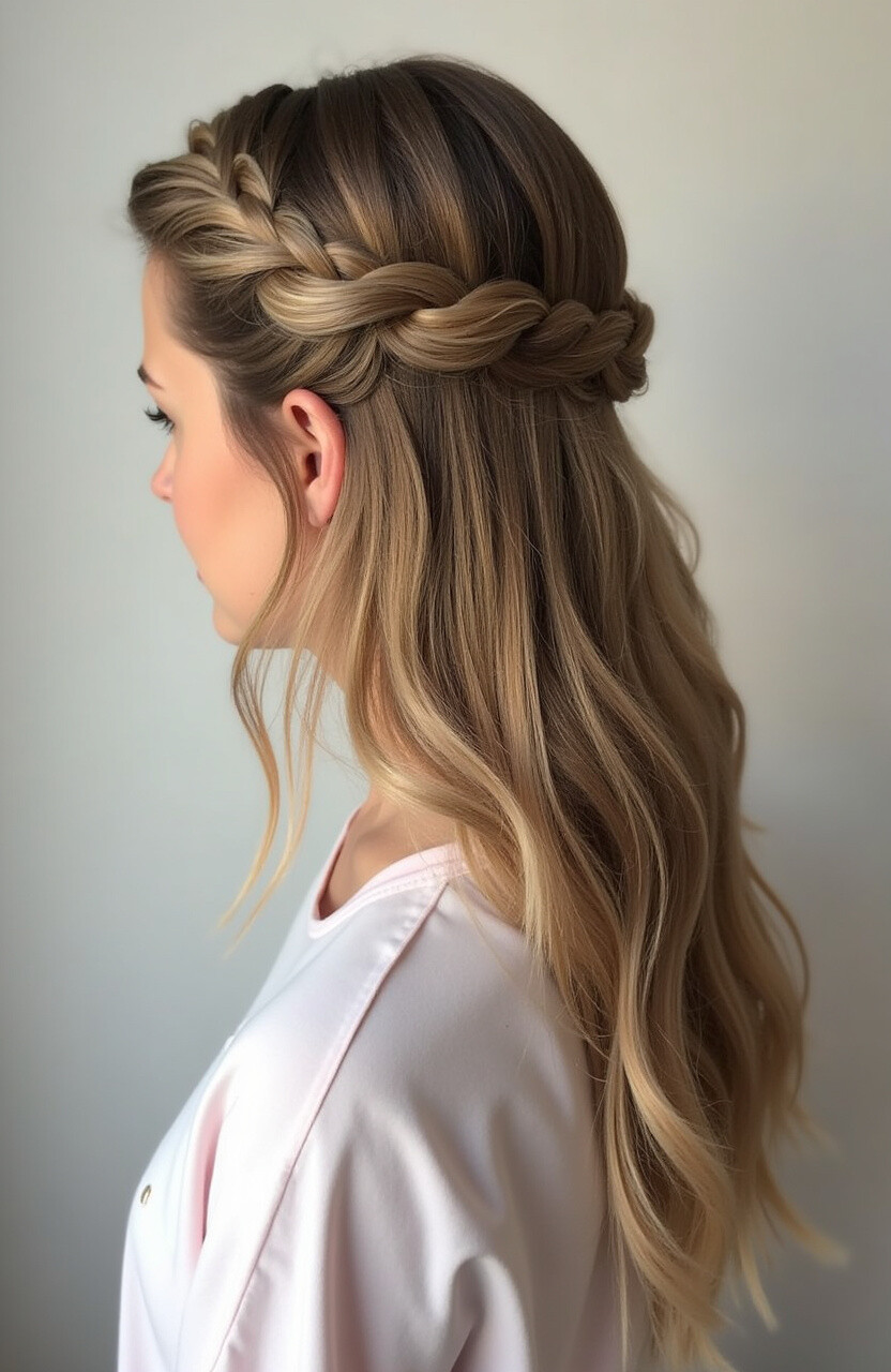 The half-up Dutch braid is like having the best of both worlds. It lets you enjoy the beauty of a braid while keeping some of your hair loose. This style is perfect if you want to frame your face with flowing locks.