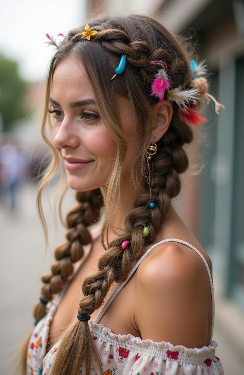 Perfect for festivals or a day at the beach, you can add feathers or beads for extra flair. This style lets you express your creativity and individuality.
