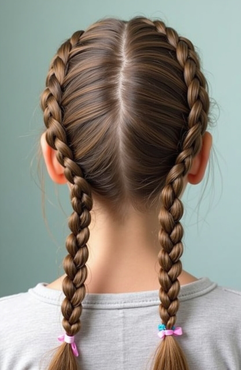 The beauty of this style is in its simplicity. Personalize it by adding colorful hair ties or clips. It’s a timeless look that works for any occasion, from school days to casual outings.