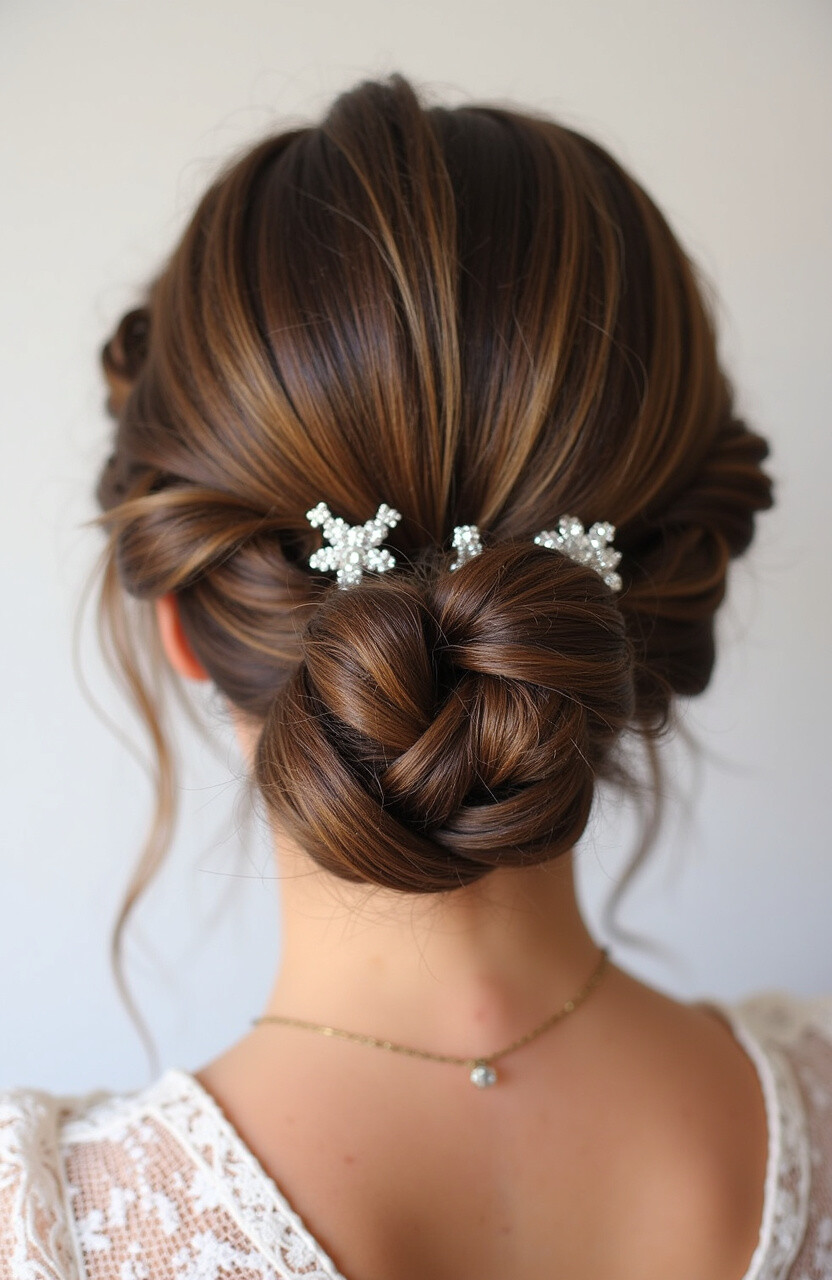 It’s ideal for formal occasions where you want to look polished and put-together. Add some sparkling hairpins for extra glam.