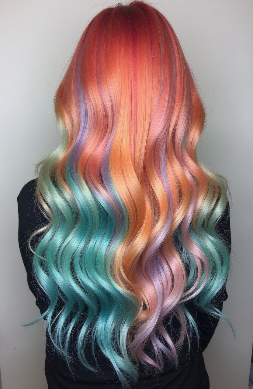 Colorful waves can be achieved with temporary hair dye, allowing you to change your look as often as you like. Pair this style with neutral outfits to let your hair be the star of the show. This option is great for anyone wanting to experiment with new and exciting looks.