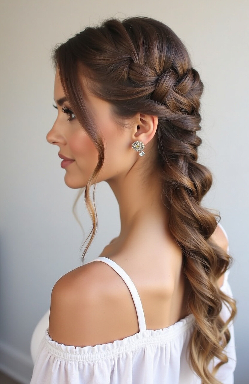Begin braiding at one side and let it cascade over your shoulder. Add some loose tendrils around your face for a softer look. It’s a simple way to elevate your hairstyle game.