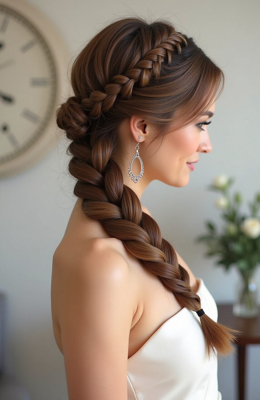 Start with a French braid and transition into a fishtail braid as you go. It’s a seamless blend that looks intricate and elegant. Pair it with a flowing gown for a truly breathtaking look.