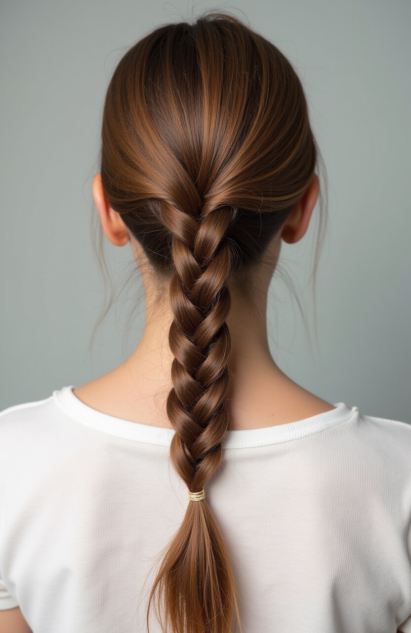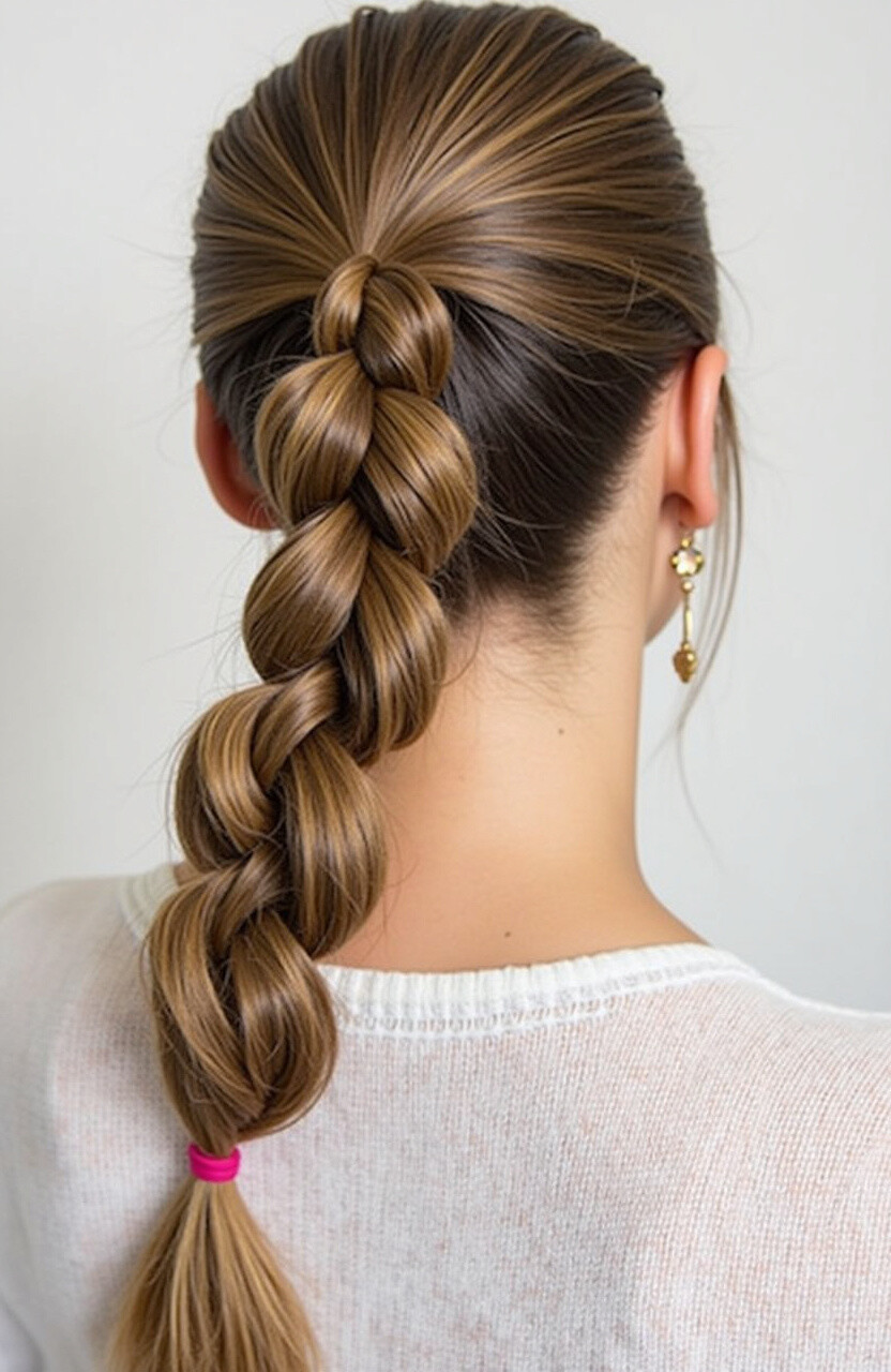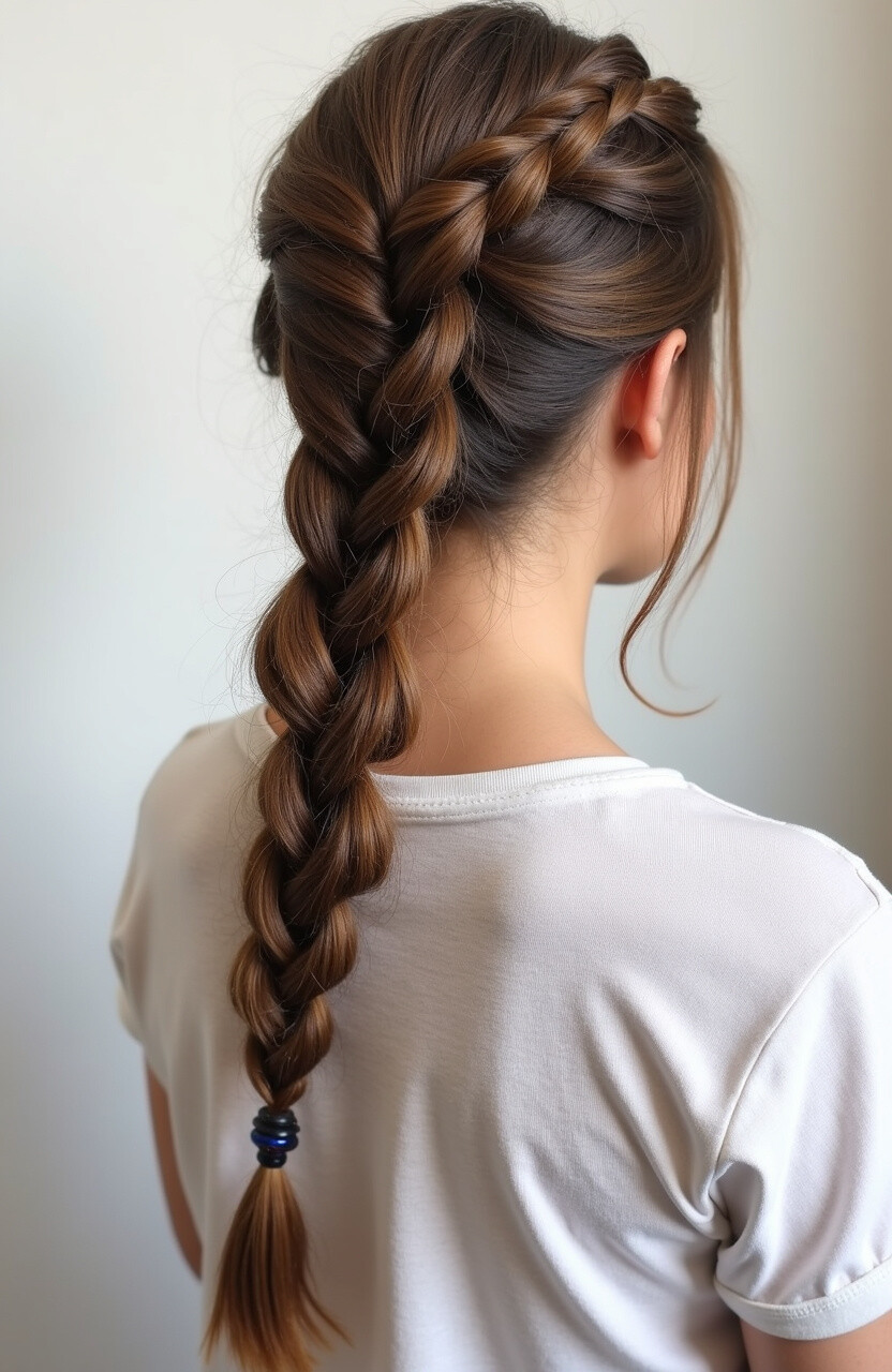 To add a twist, pull gently on the braid to create a fuller, more voluminous look. Use a small elastic band to secure the end, and you’re ready to go. This style is perfect for someone who appreciates elegance without the fuss.