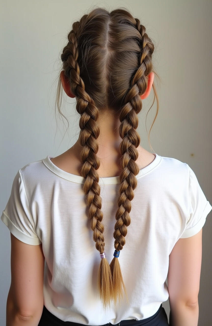 Part your hair down the middle and create two fishtail braids. You can keep them neat or pull them apart slightly for a messier look. This style is great for summer festivals and casual days out.