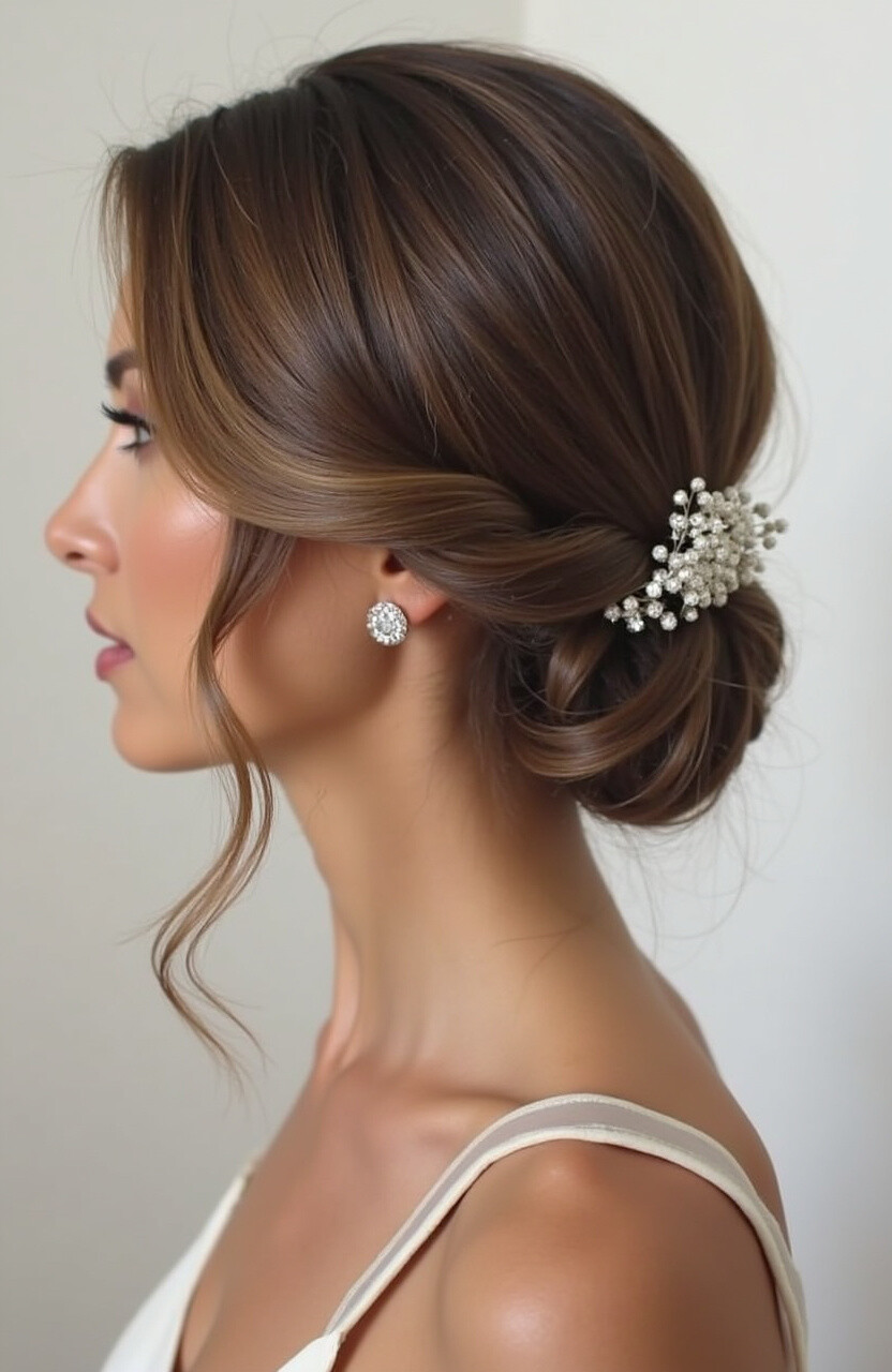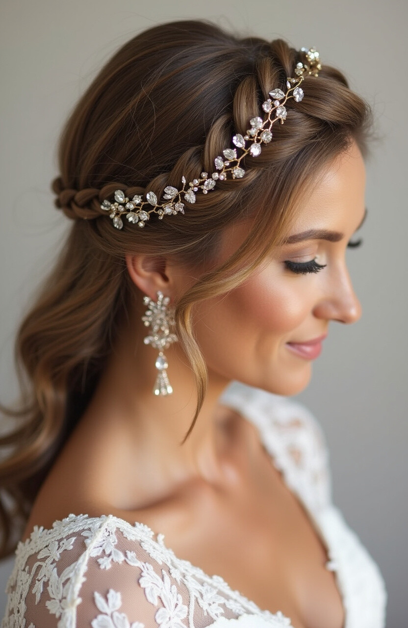 Braid your hair into a crown and pin it securely. Add some sparkle with small gems or clips. It’s a timeless look that never goes out of style.
