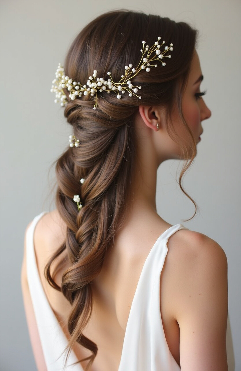 This braid takes a bit of practice but offers a stunning payoff. Add tiny flowers or pearls for an added touch of beauty. It’s a hairstyle that looks as beautiful in real life as it does in photos.