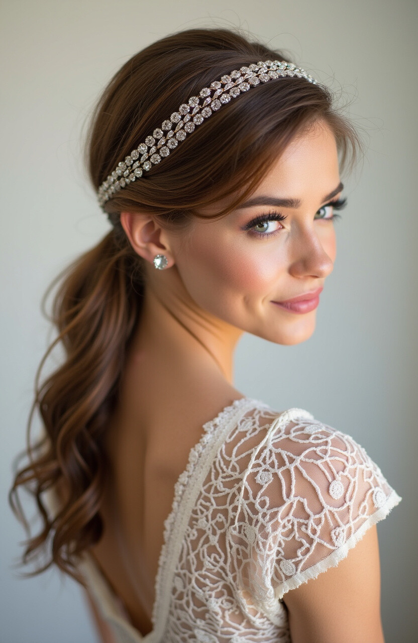 Add a touch of glamour with a headband in your half-up hairstyle. It’s a quick way to upgrade any look with minimal effort. Perfect for casual outings or when you want to add a bit of sparkle.