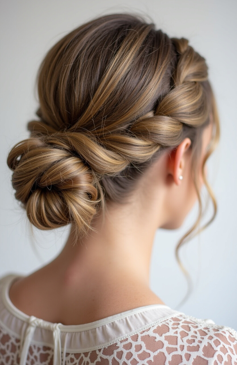 Combine the twist and bun for a sophisticated and chic look. The Twisted Half-Up Bun is great for work or a day at the mall. It’s the perfect mix of casual and elegant.