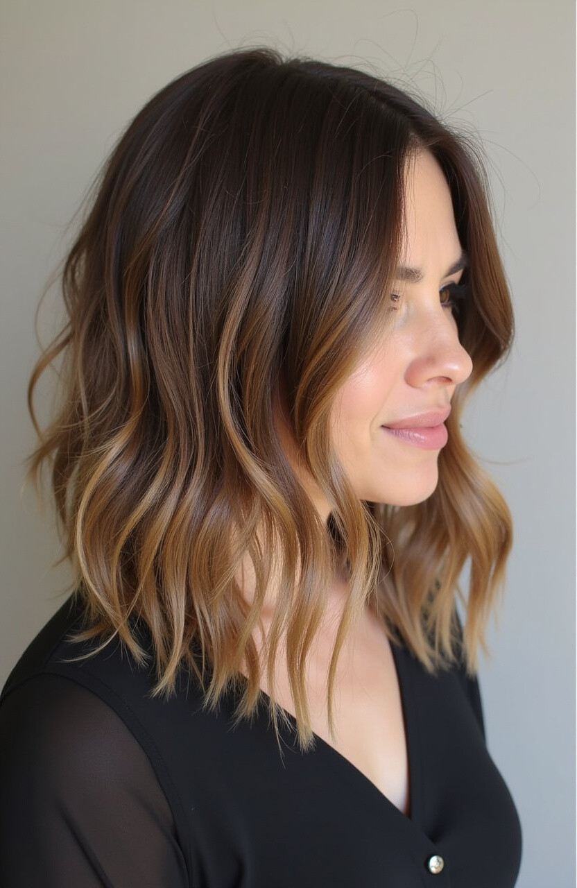 What sets this look apart is its effortless charm. The waves bring out the layers beautifully, creating a casual yet chic appearance. Adding a bit of sea salt spray can enhance the waves and give you that just-off-the-beach look.