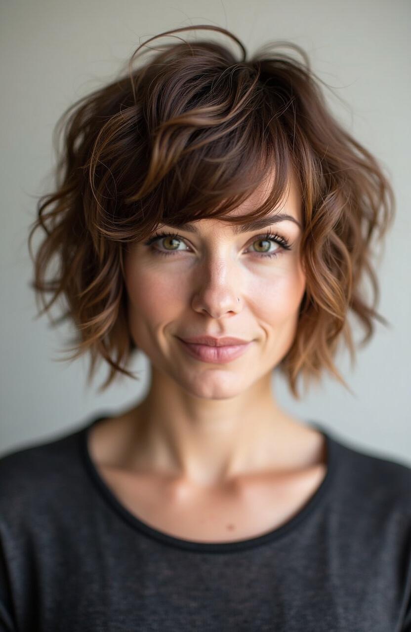 The Short Shag is perfect for those who want something edgy and modern. It’s all about making a statement with shorter layers and lots of texture.
