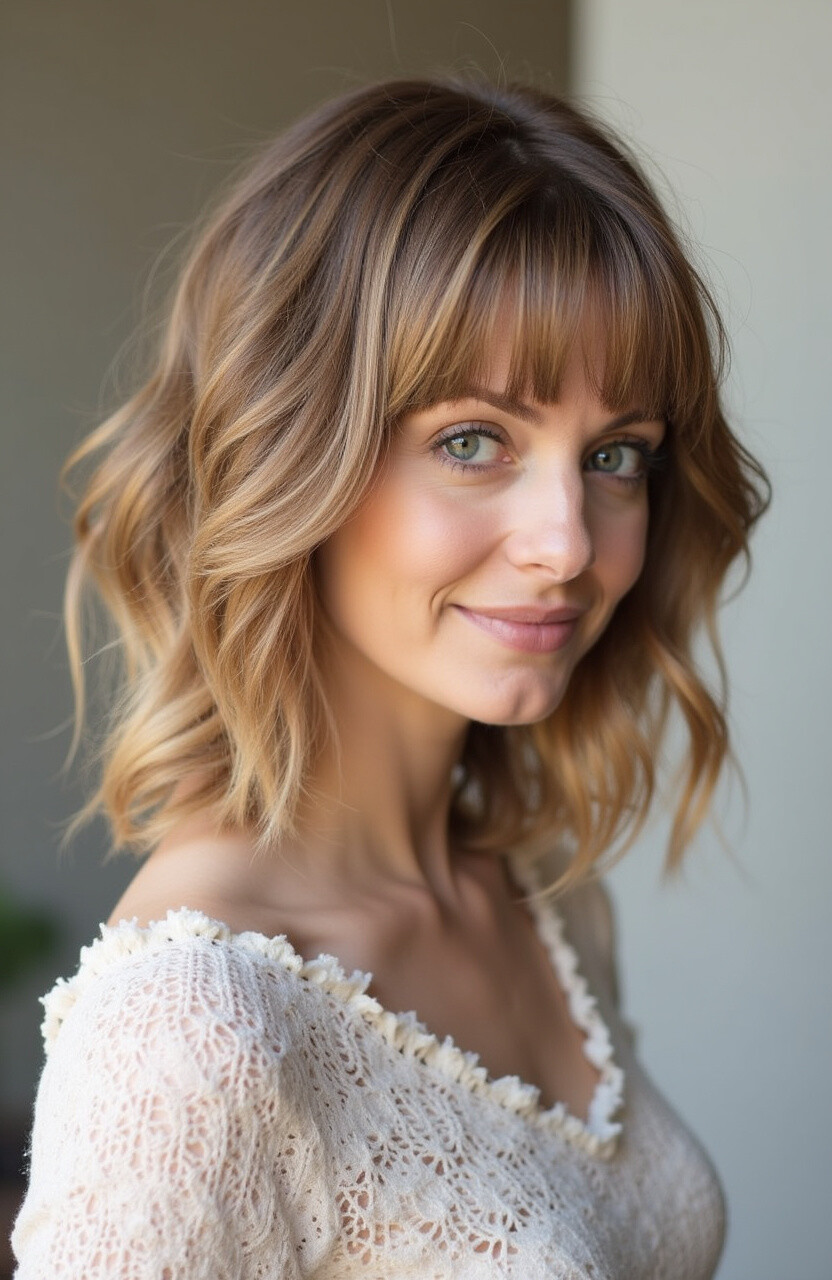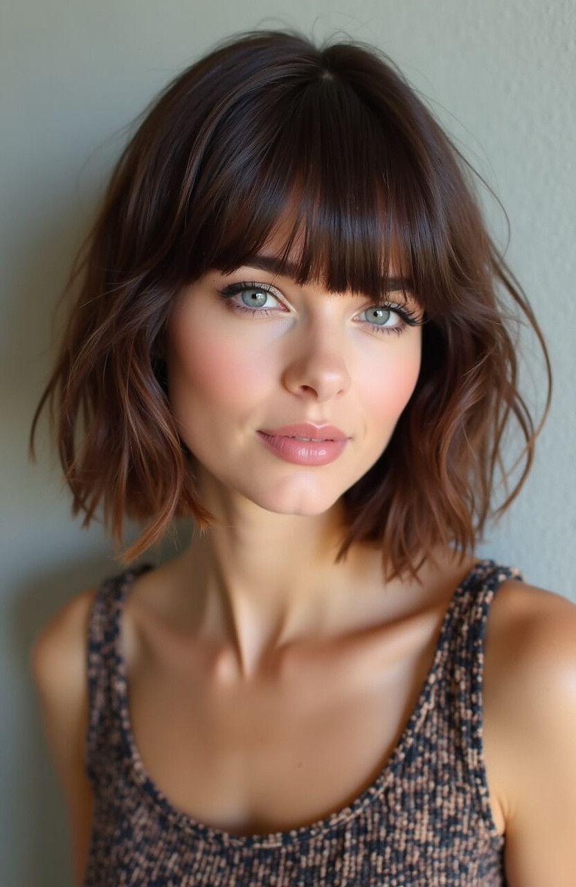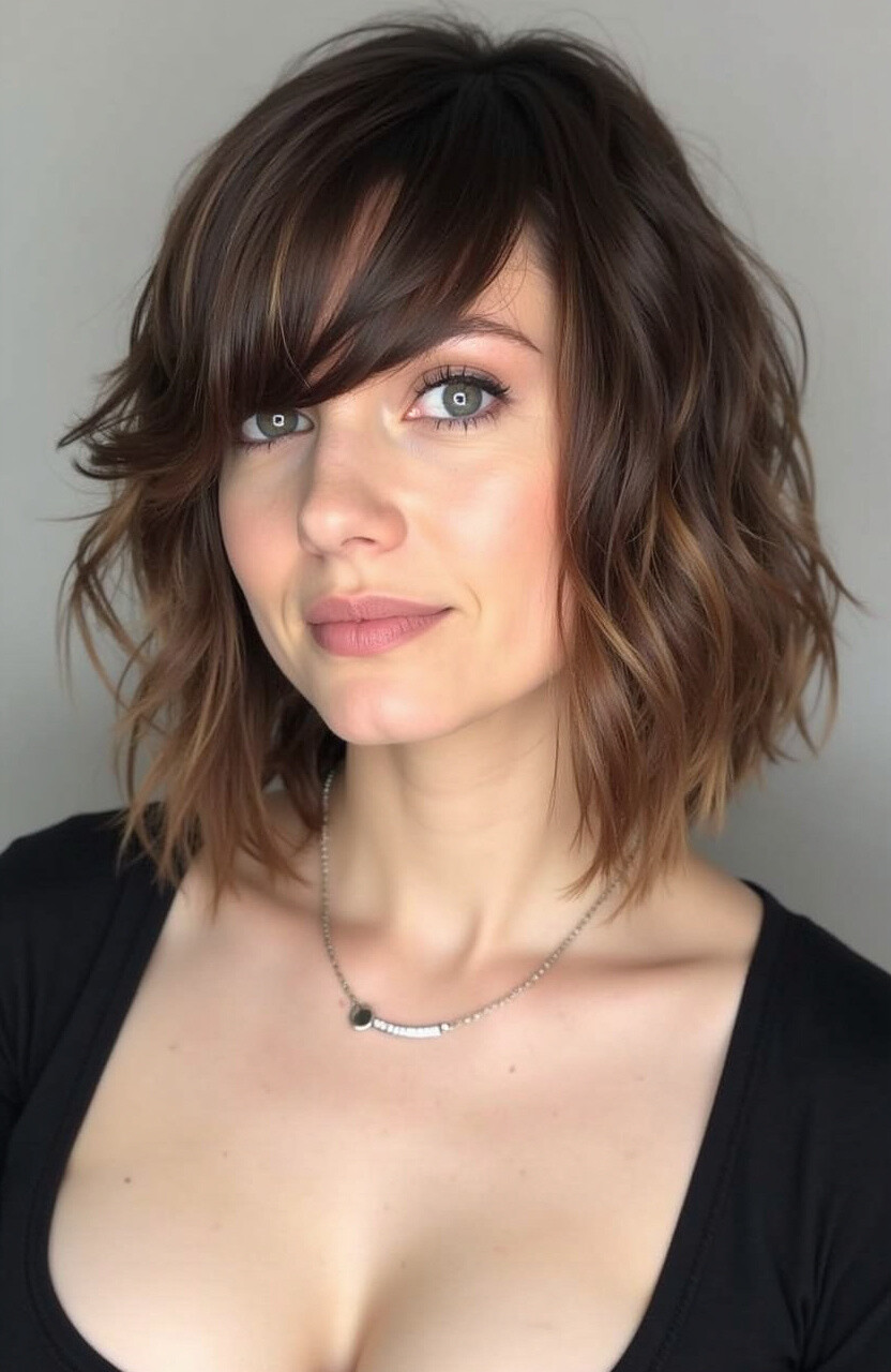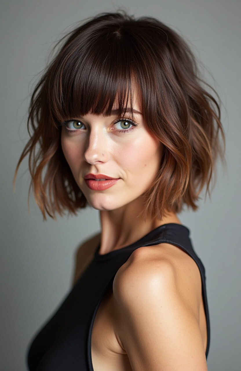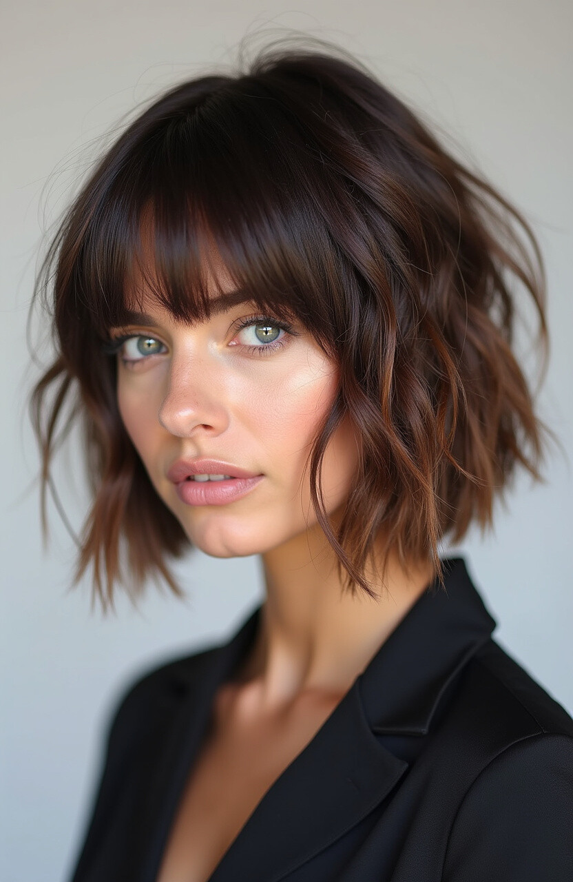Adding bangs to a shag cut can create an entirely new look. The fringe adds softness and frames the face beautifully. It’s a great way to update your style.