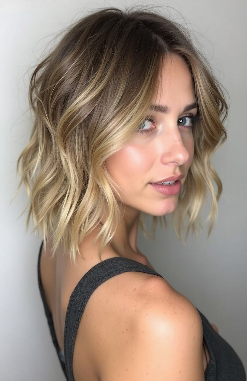 This look is perfect for those who aren’t ready to go short but want a change. It’s versatile and can be styled in many ways, from beachy waves to sleek and straight. The layers add a playful touch to long locks.