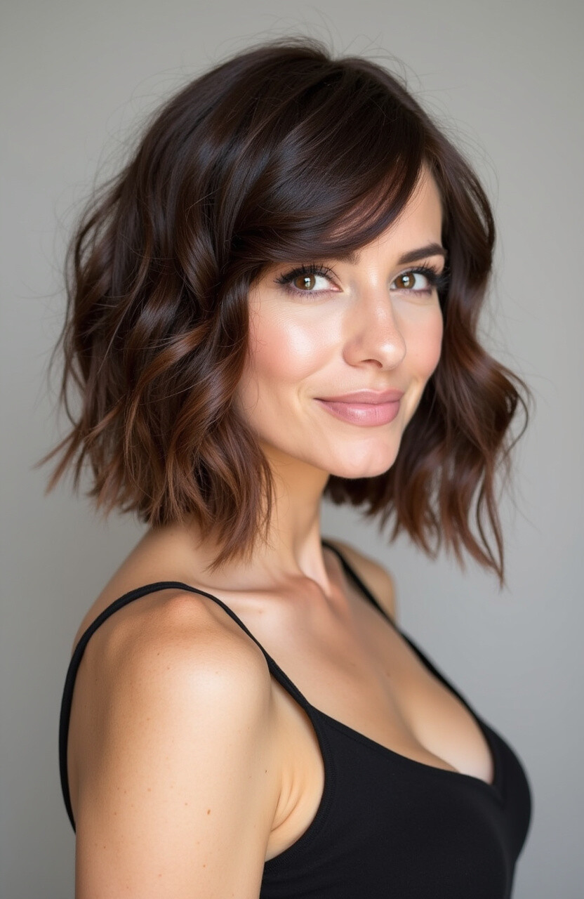 This style is great for anyone who wants to try something new without going too short. It’s easy to style and maintain, making it a practical choice. The layers add dimension to the classic bob.