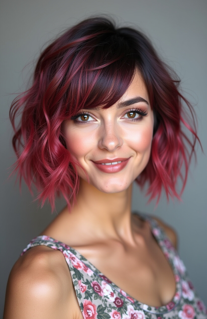 The Layered Lob Shag combines the trendy lob with shaggy layers. This style is modern and chic, perfect for anyone wanting a fresh look.