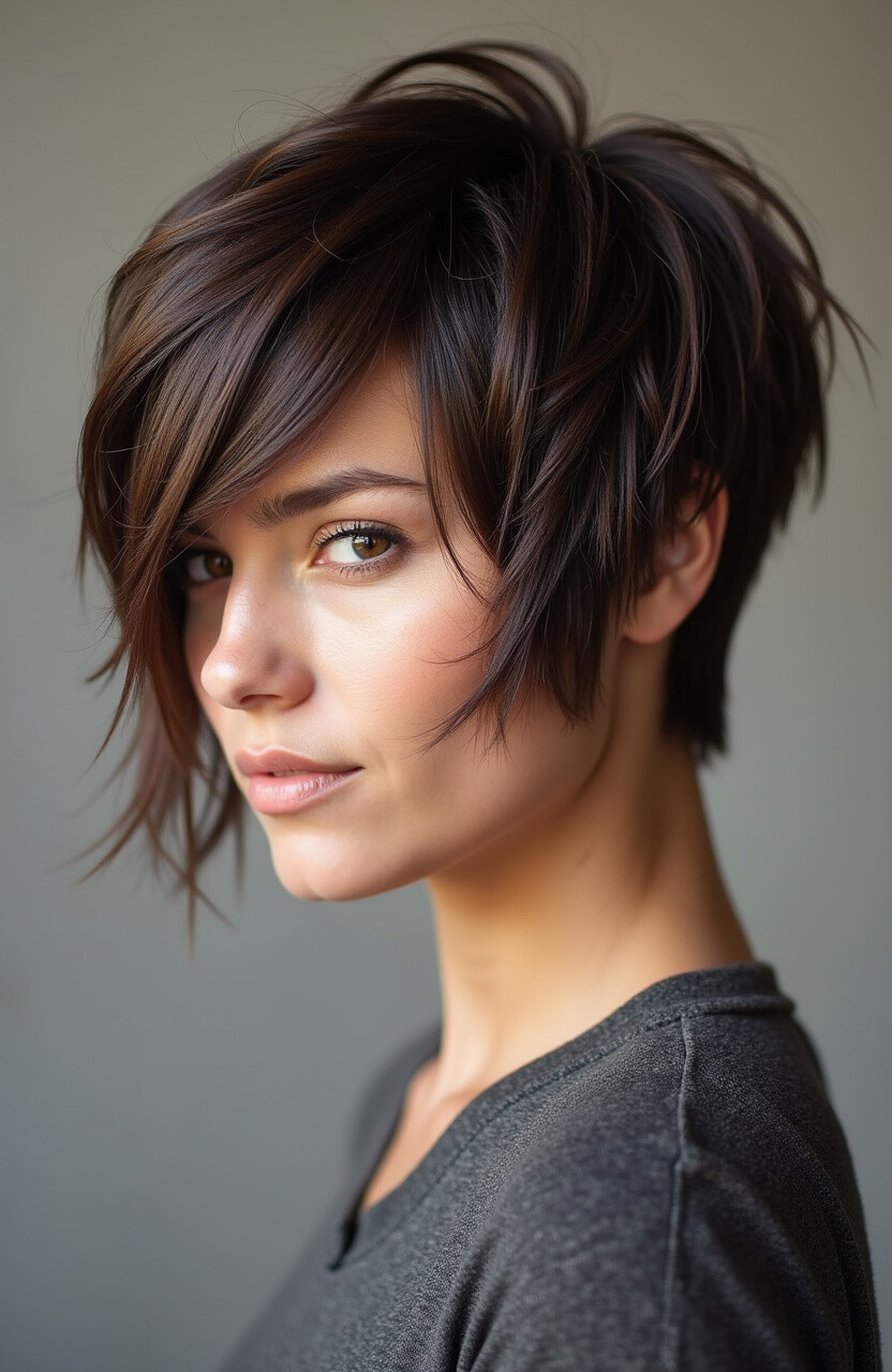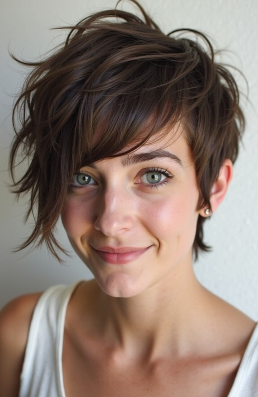 The Textured Pixie Shag is a fun twist on the classic pixie cut. It combines short layers with texture for a playful look.