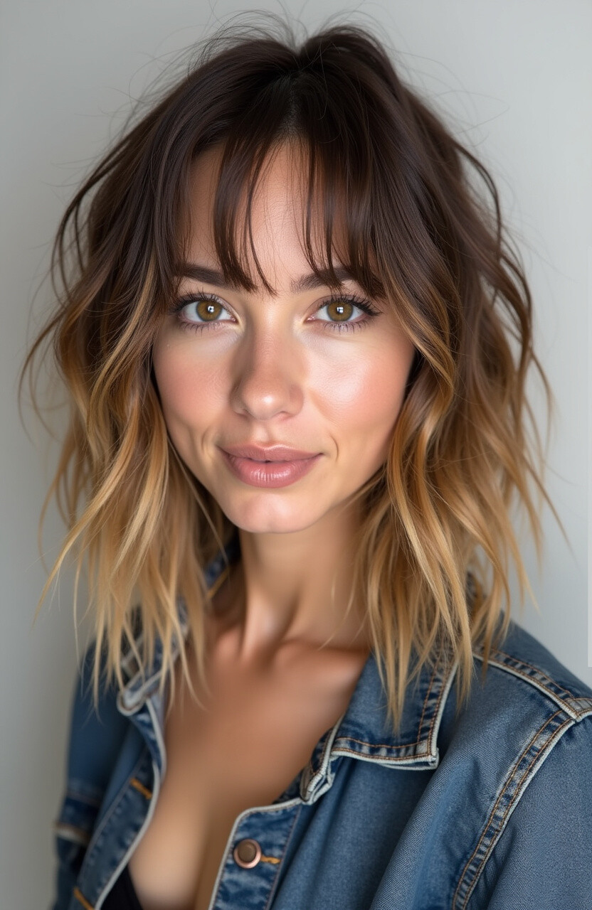 Shaggy layers add texture and volume, creating a fun, casual style. This hairstyle is all about embracing a carefree, relaxed vibe.
