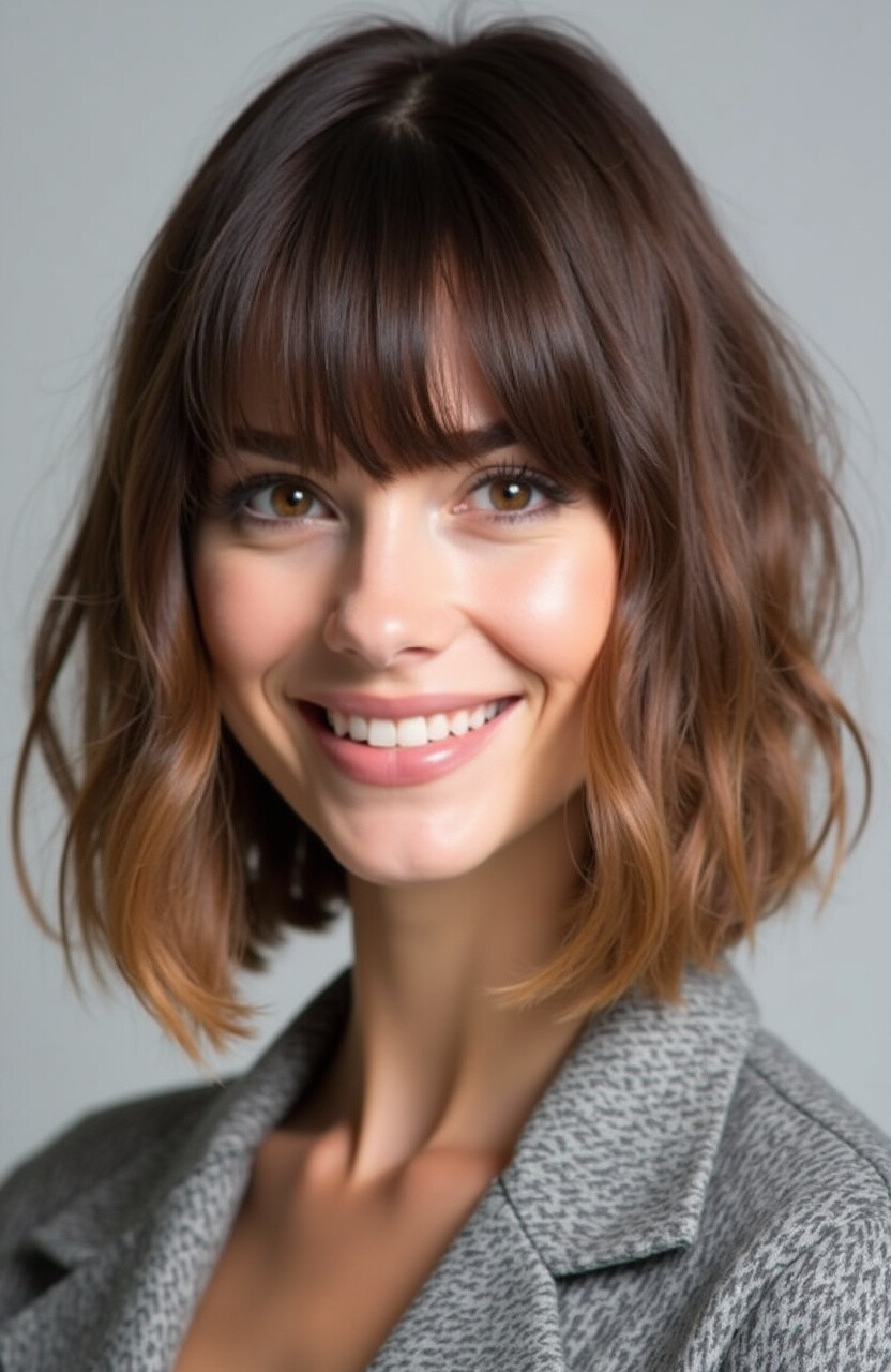Bangs can be styled in various ways, from blunt to wispy. They work wonders for highlighting your eyes and cheekbones.