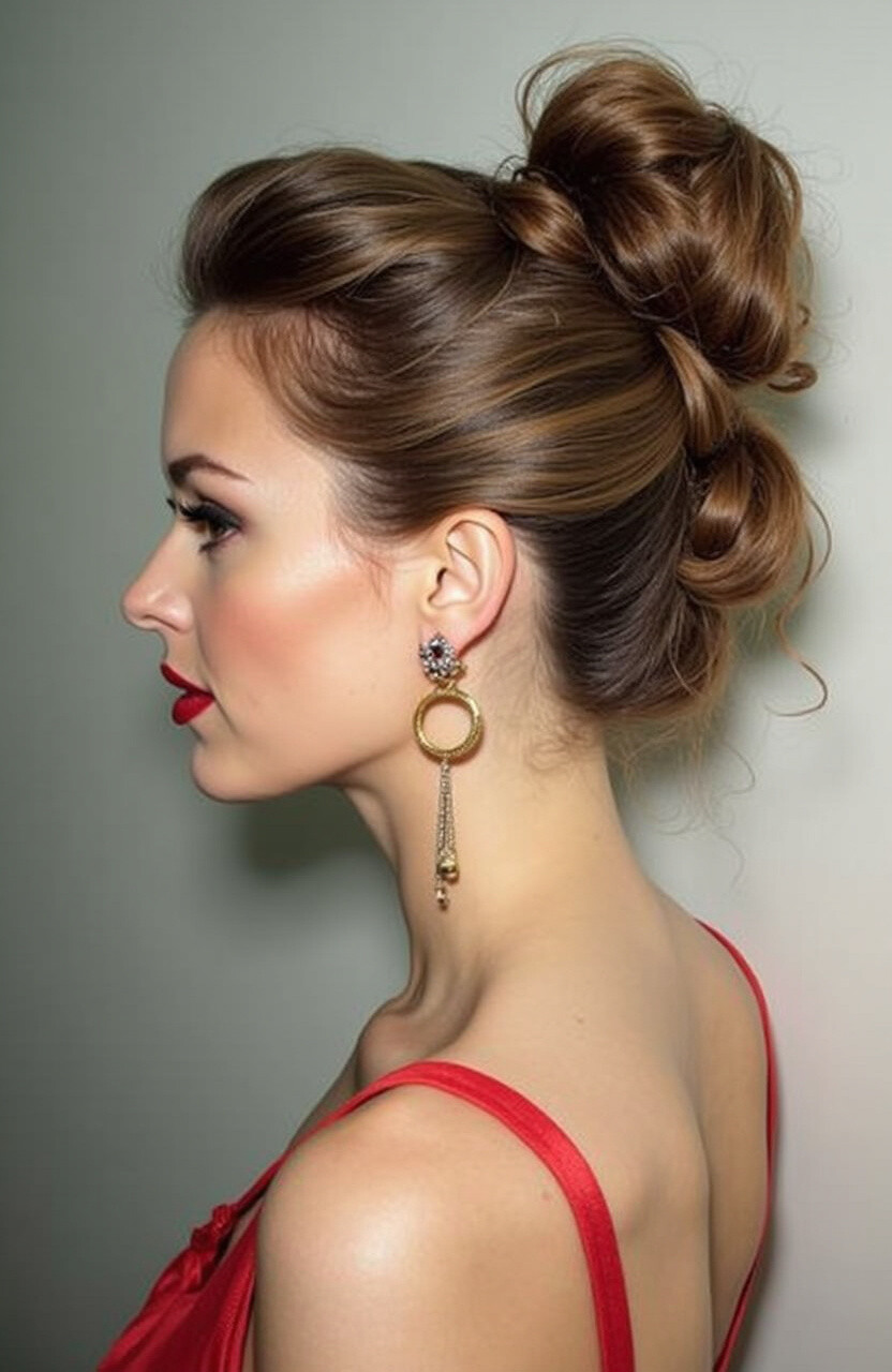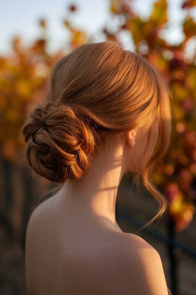 Take a step back in time with a vintage-inspired loose bun. This style evokes the glamour of old Hollywood with its soft curls and classic silhouette.