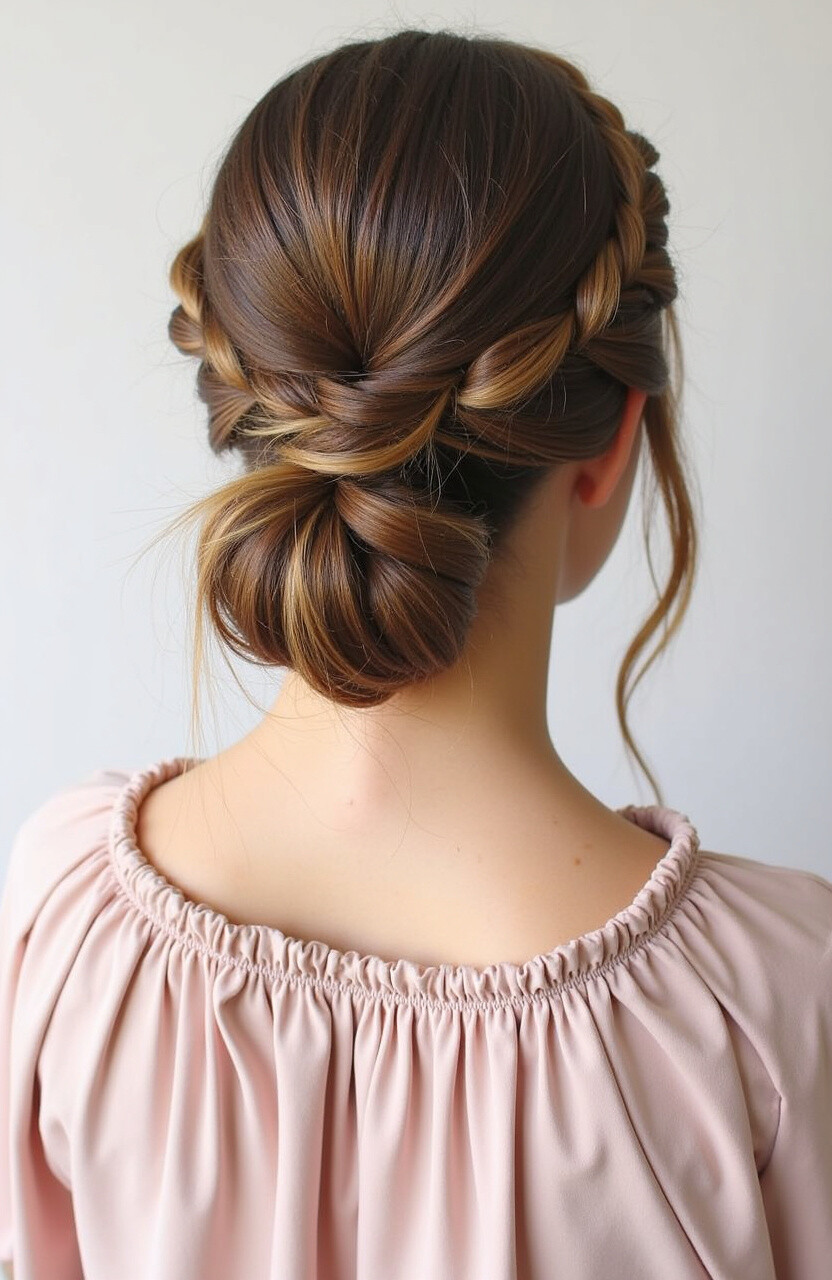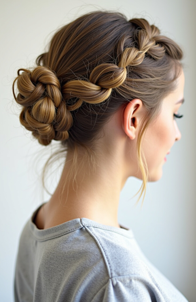 Braid a section of your hair before wrapping it into a bun. The braid adds an extra layer of texture and interest, making this style a standout choice.