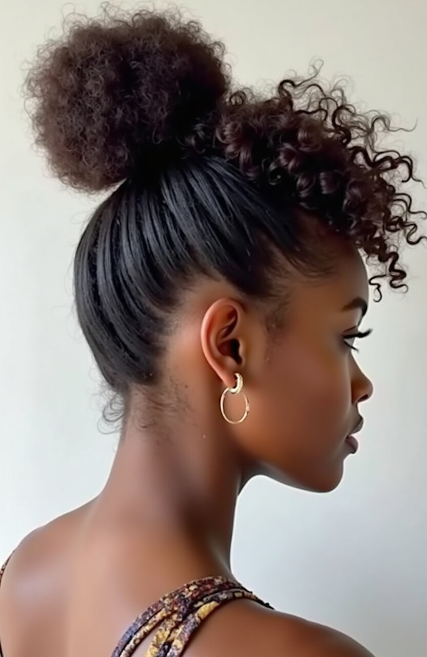 Embrace your curls with the curly loose bun, a style that celebrates natural texture. It’s vibrant and full of life, perfect for any occasion.