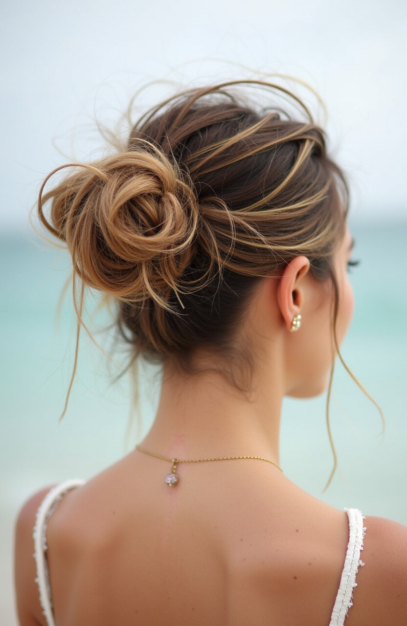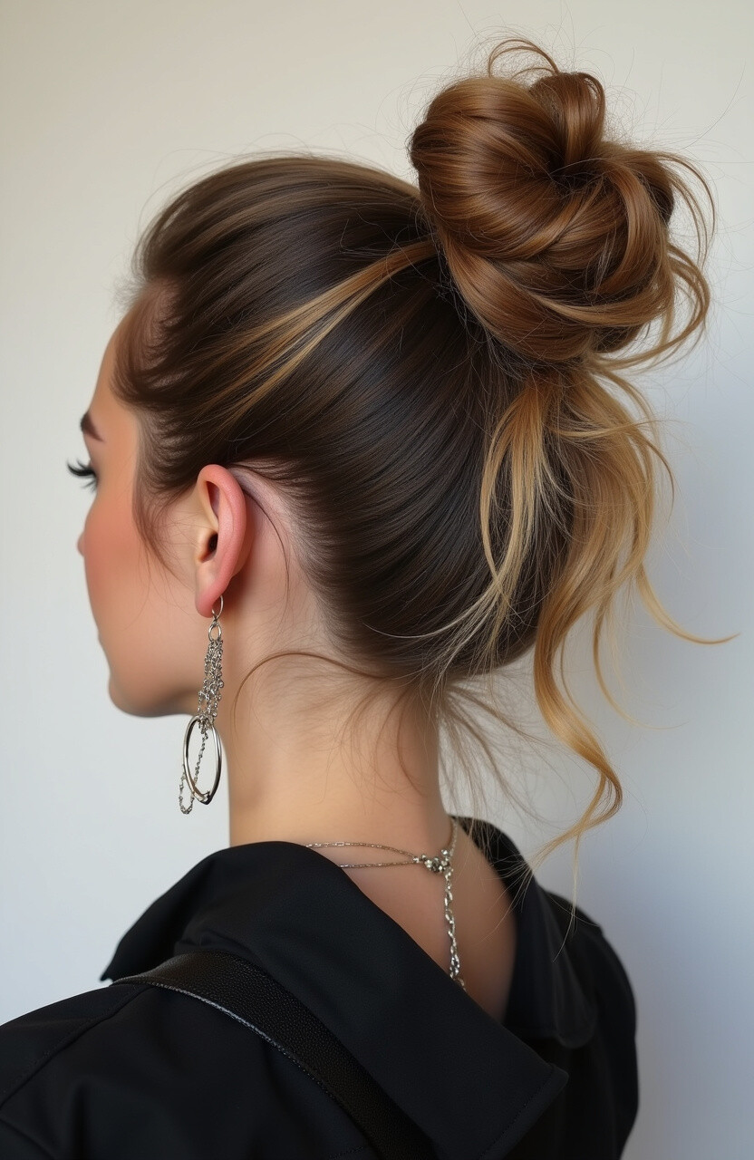 This bun is particularly great for showcasing highlights or balayage. It’s a playful style that’s perfect for picnics or casual dates.