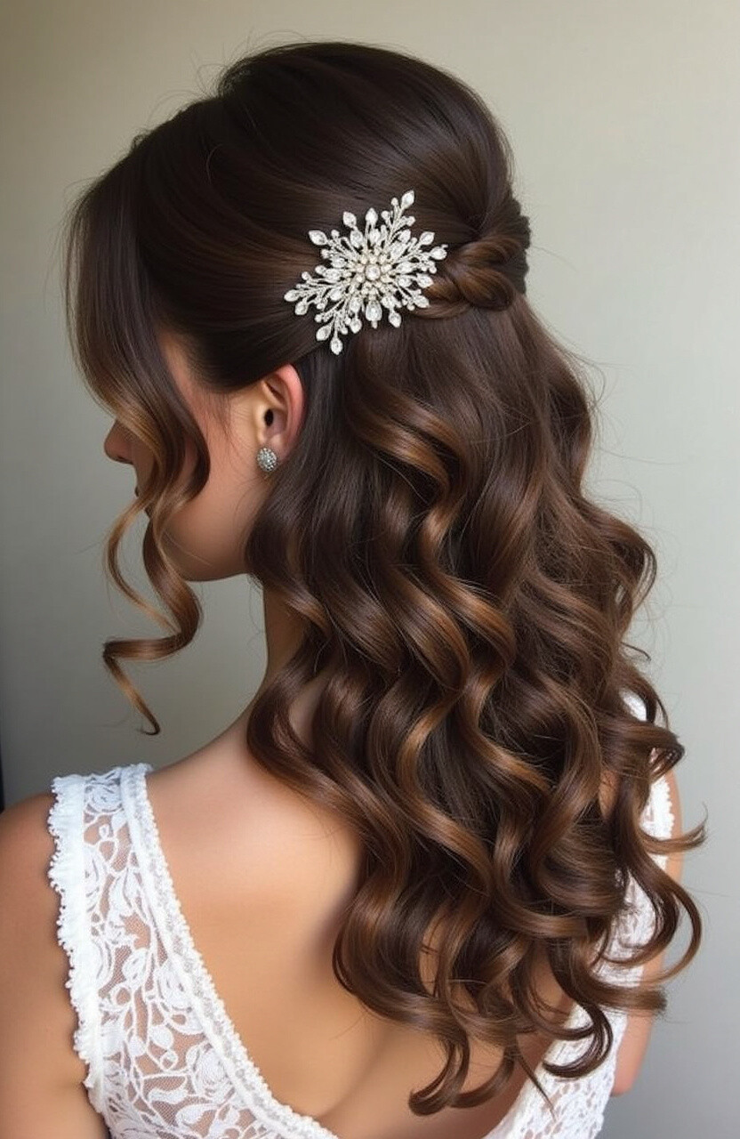 Gather the top section of your hair and pin it back, allowing the rest to cascade down in loose curls. This style frames the face beautifully and is great for both casual and semi-formal occasions.
