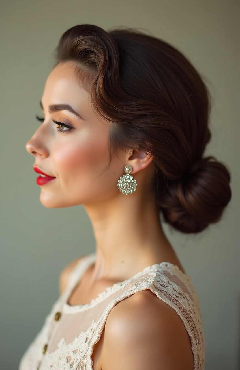 The Vintage Low Bun is all about bringing back the glamour of the past. It involves rolling and pinning your hair in a way that channels old Hollywood elegance.