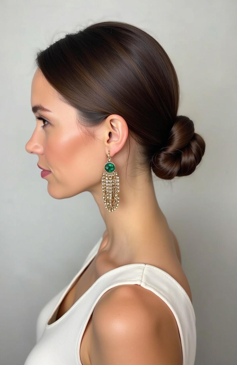 The Classic Sleek Low Bun is all about elegance and simplicity. With your hair smoothly pulled back, this style offers a polished look that works for both office meetings and evening dinners.