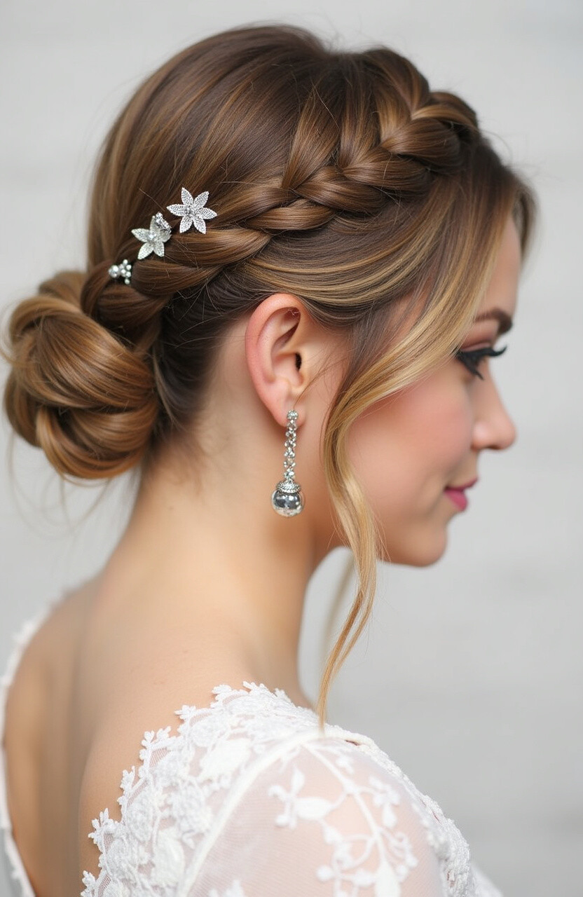 This style is perfect for weddings or any formal occasion. The braids add a unique twist, making your hairstyle a conversation starter. Use small decorative pins to enhance its beauty.