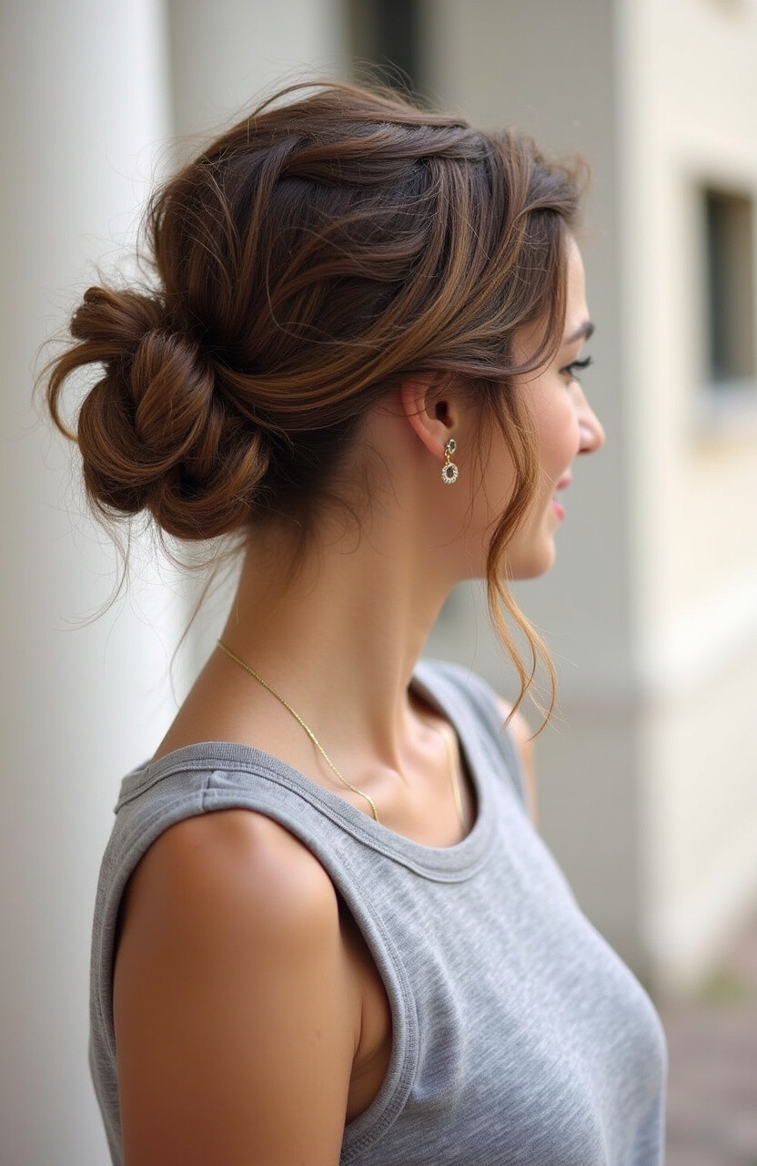 The Braided Low Bun combines texture and elegance. It involves braiding sections of your hair and wrapping them into a bun, giving you a detailed and intricate look.