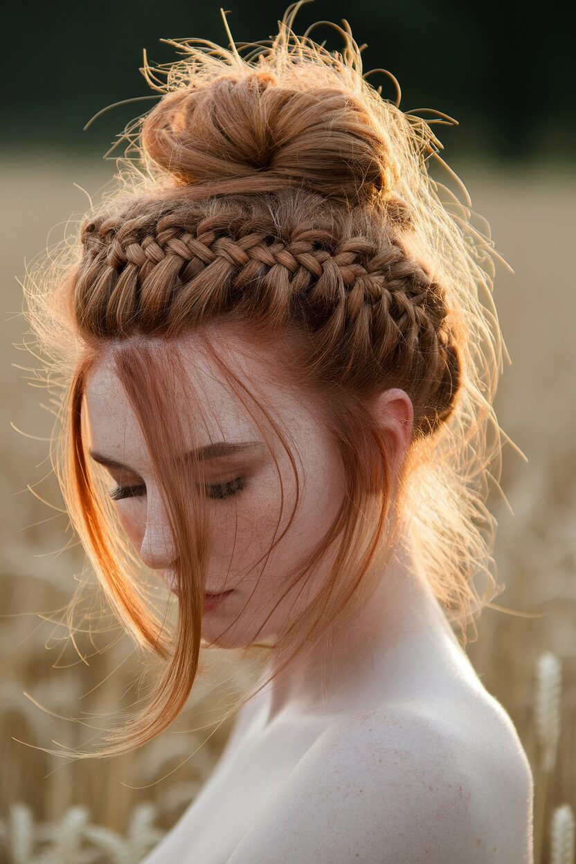 Braids add texture and depth, making the bun look fuller. This style is great for casual outings or even a relaxed office look.