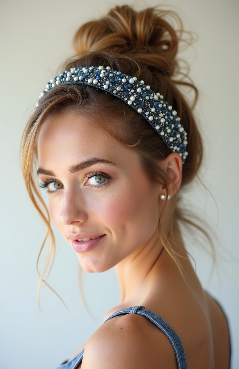 Headbands aren’t just for keeping hair out of your face. They can also elevate your messy bun to new heights.