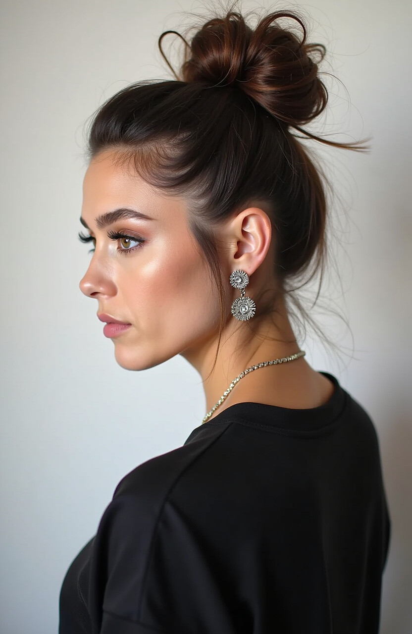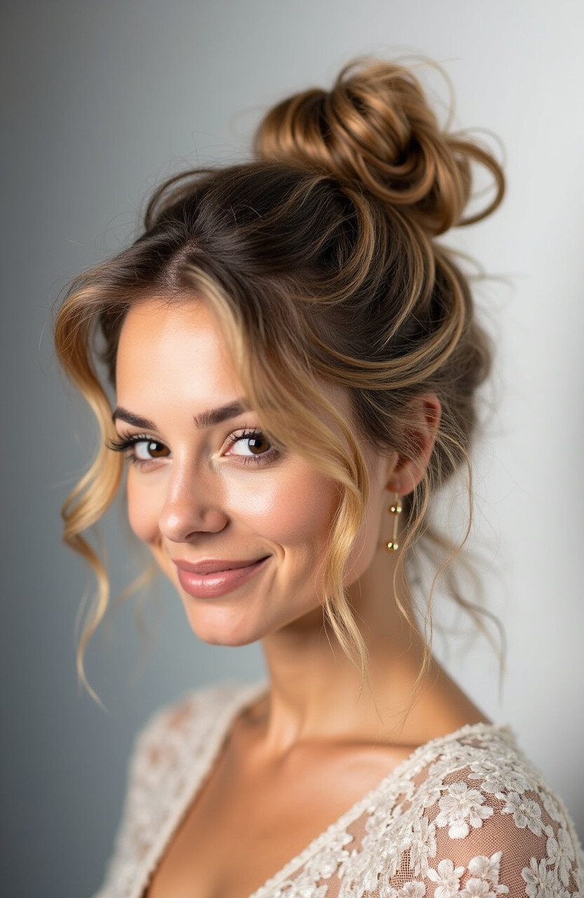Picture this: effortless elegance perched right on top of your head. The classic high messy bun is timeless and always in vogue.