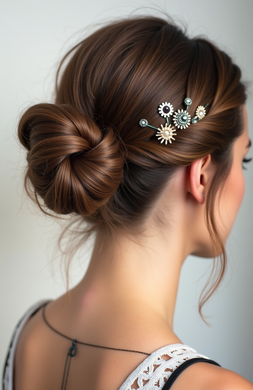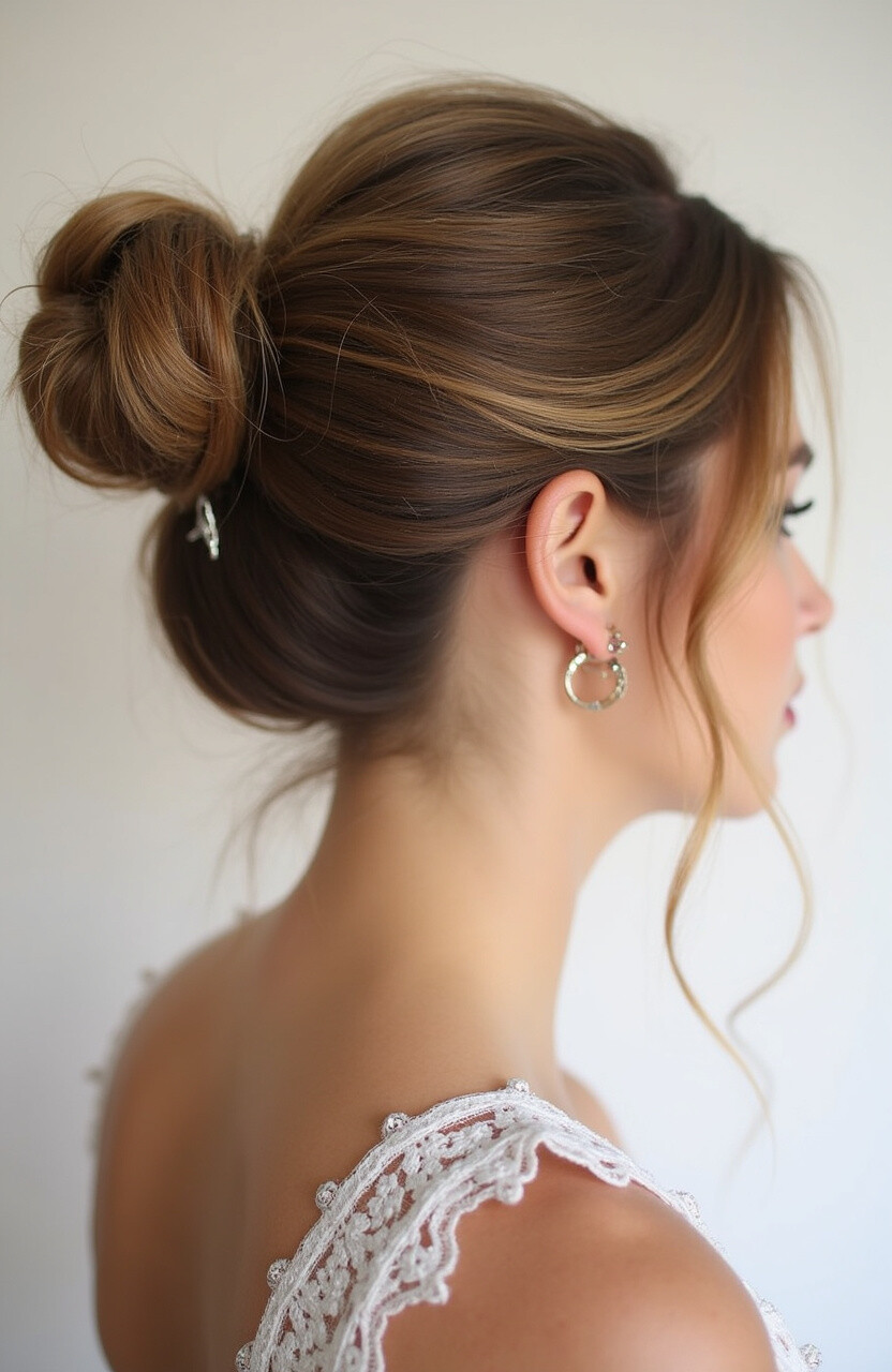 This style is perfect for those who love a bit of whimsy. Ribbons can be tied around the base of the bun or woven through it.