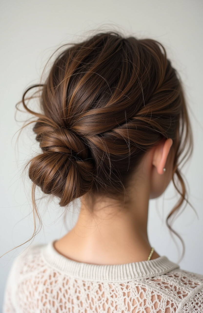 Elevate your bun game with a twist knot messy bun. It’s both intricate and easy to create.