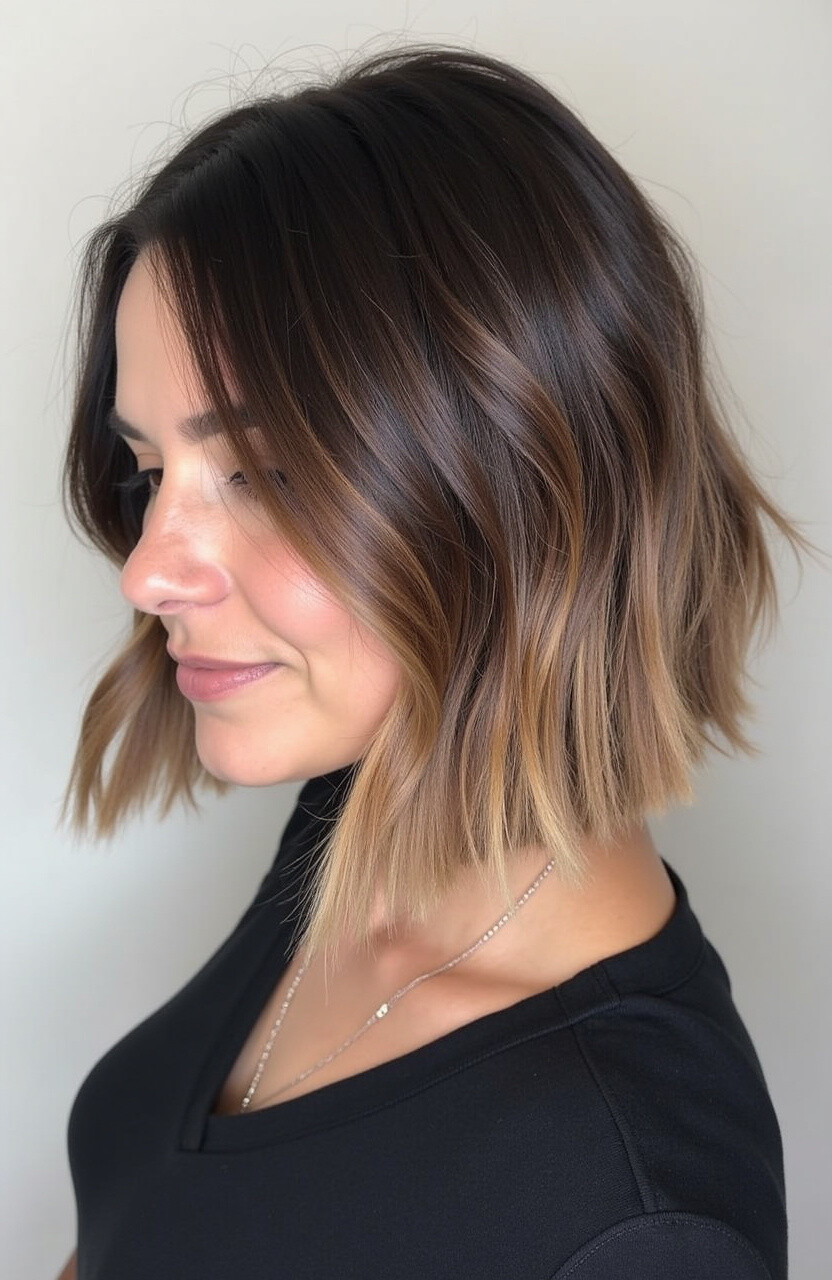 Ombre adds a gradient effect to your bob, transitioning from one color to another. It’s a stylish way to add color without full commitment.