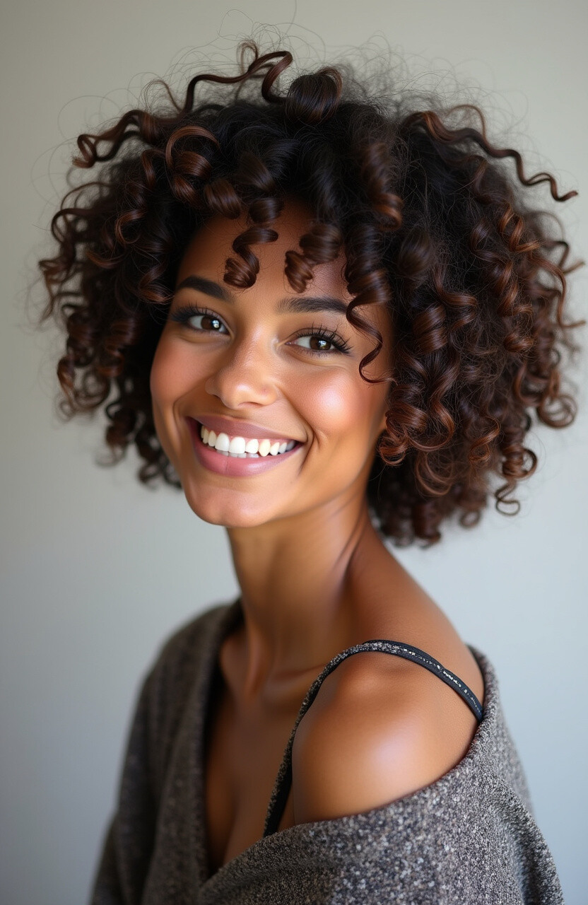 It’s perfect for showcasing your curls while keeping them manageable. Use a curl-defining cream to enhance those beautiful ringlets.