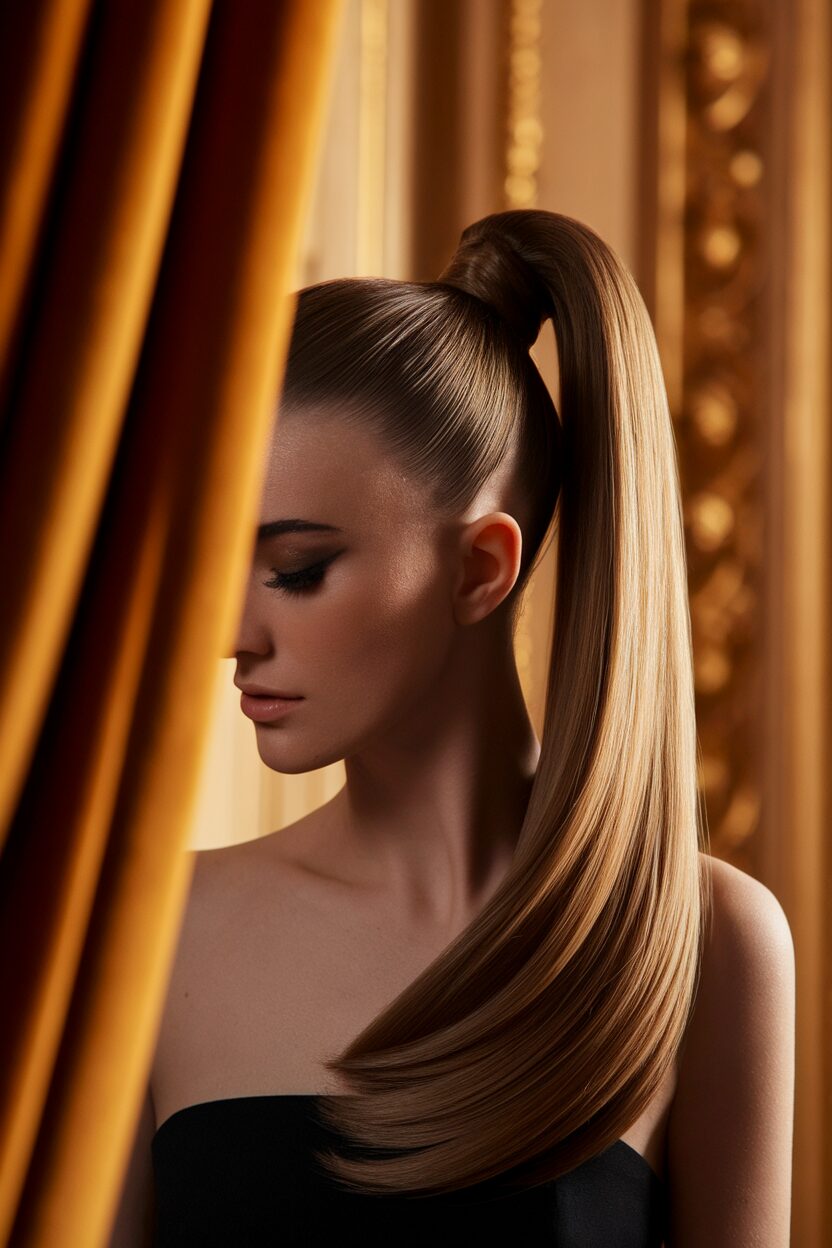 The sleek high ponytail is a power move in the hairstyle world. It lifts the face, shows off your features, and gives a youthful appearance. This look is all about confidence and elegance.