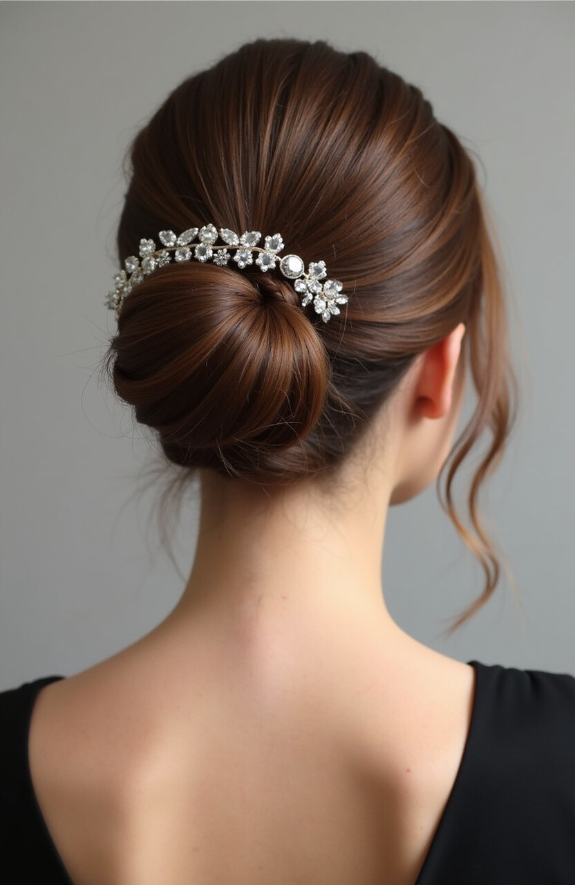 The elegant chignon is a timeless choice that never goes out of style. It’s perfect for both formal occasions and casual outings. This hairstyle hugs the nape of your neck and offers a sleek, sophisticated silhouette.