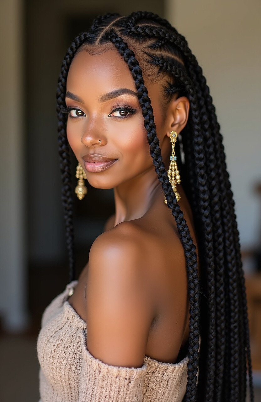 Goddess braids are all about elegance and sophistication. These are larger cornrows that lie flat against the scalp, offering a regal look. They’re great for protective styling.